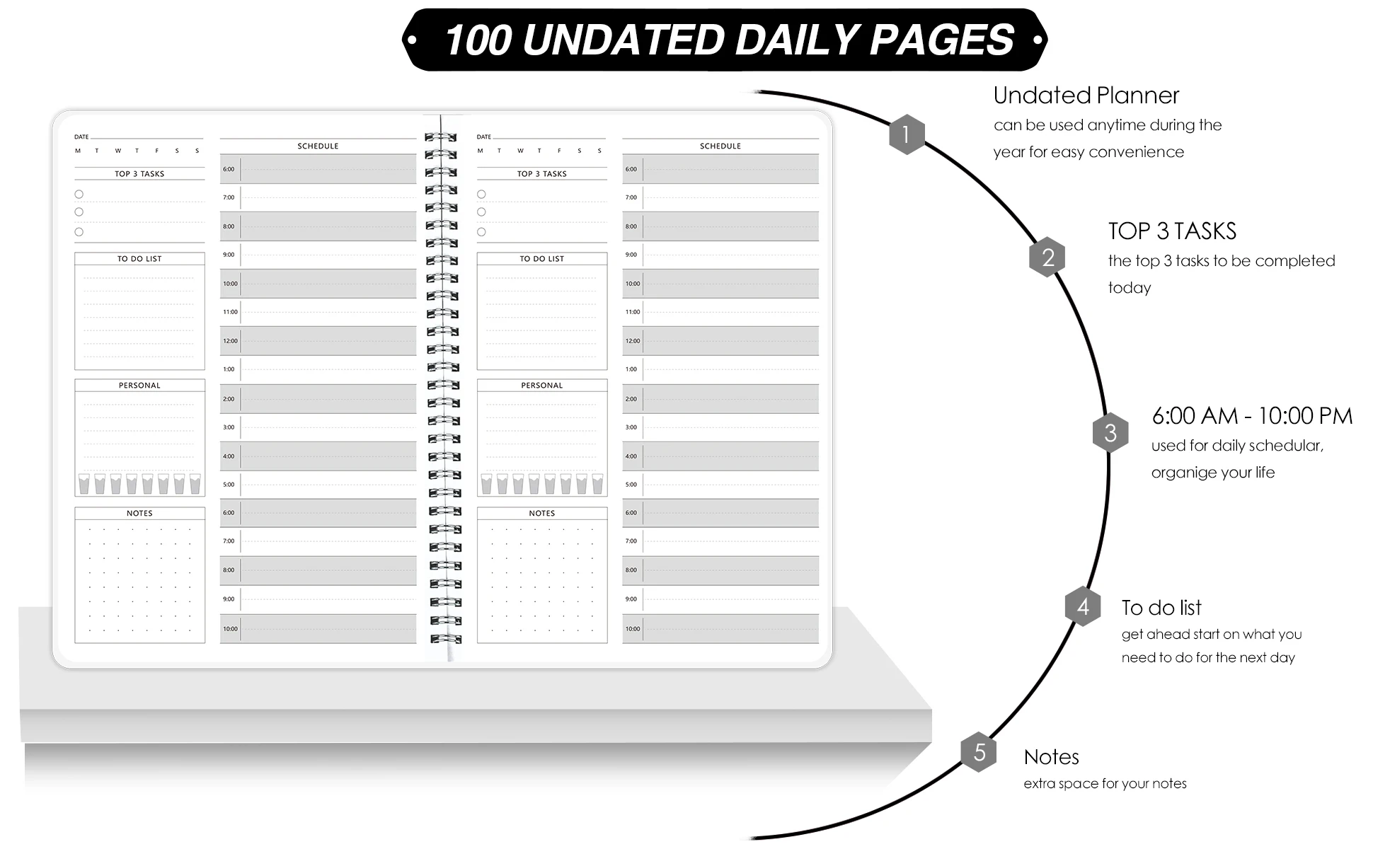 Ежедневный ежедневный планировщик 2,100 + страниц