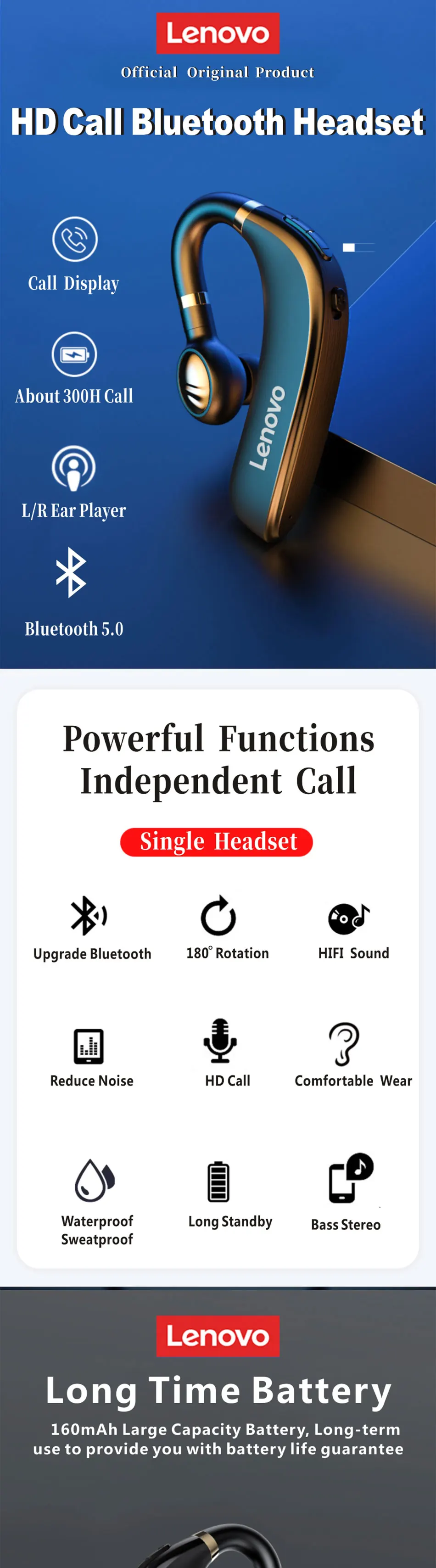 Lenovo HX106 ушные крючки Bluetooth наушники IPX5 беспроводные наушники 5,0 вкладыши с микрофоном 40 часов для вождения встречи Hifi гарнитура
