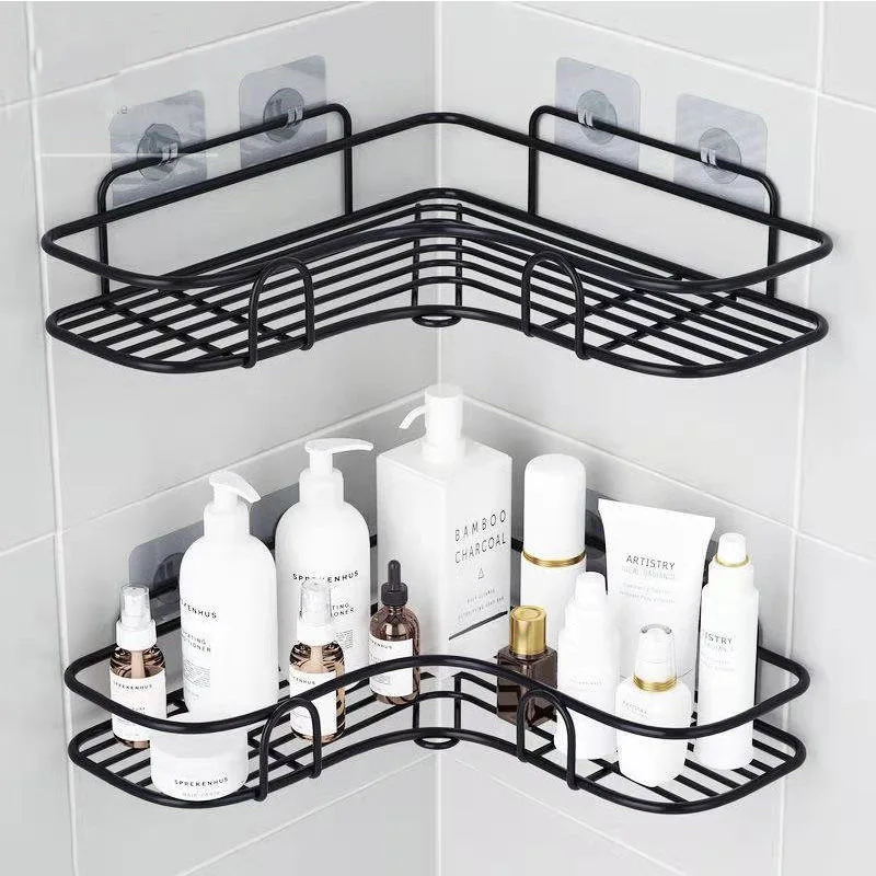 Bathroom kitchen Punch Corner Frame Shower Shelf Wrought Iron Shampoo Storage Rack Holder
