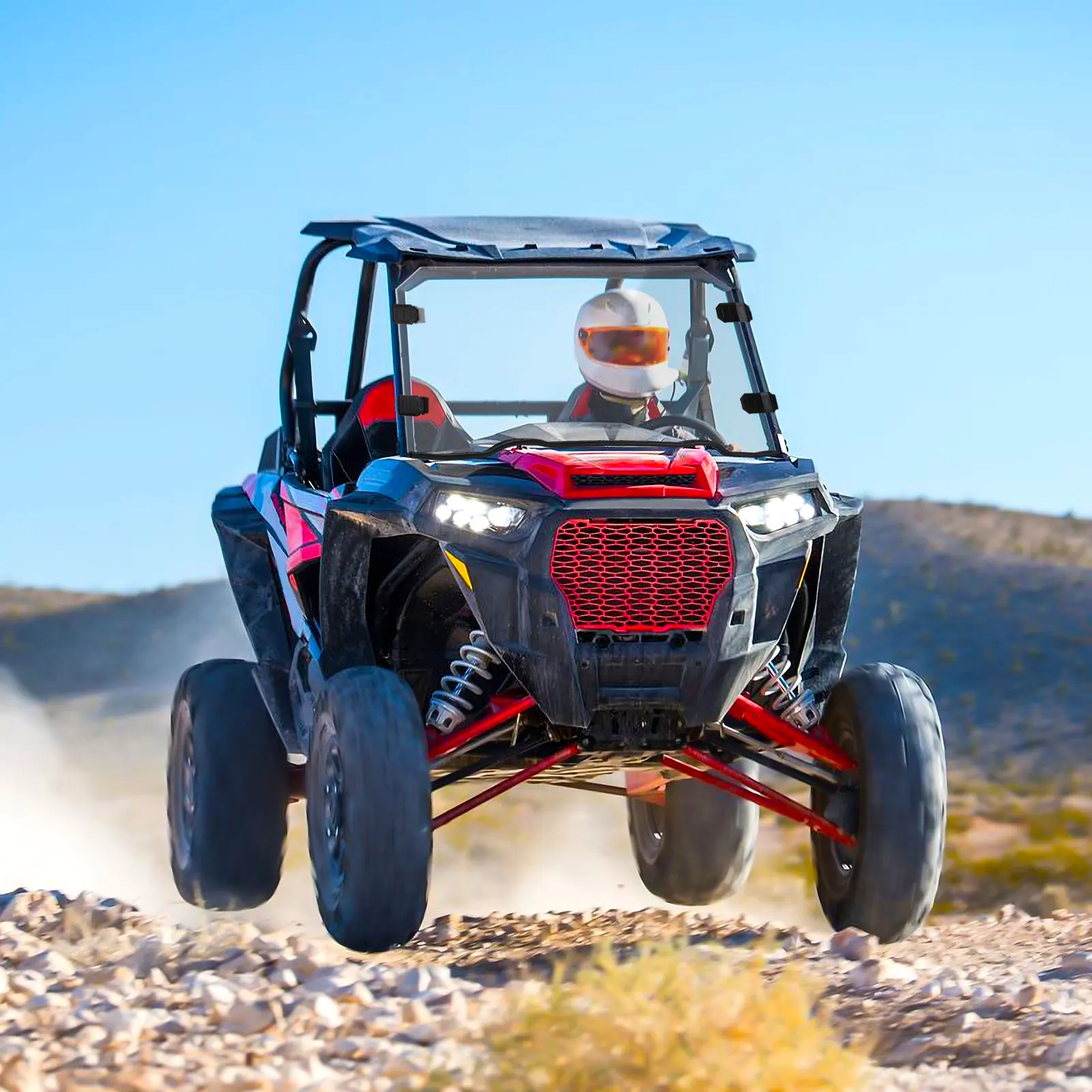 6. С профессиональной точки зрения, чтобы рассмотреть аксессуары для UTV, наше лобовое стекло не будет мешать установке других аксессуаров, все края округлые и гладкие.