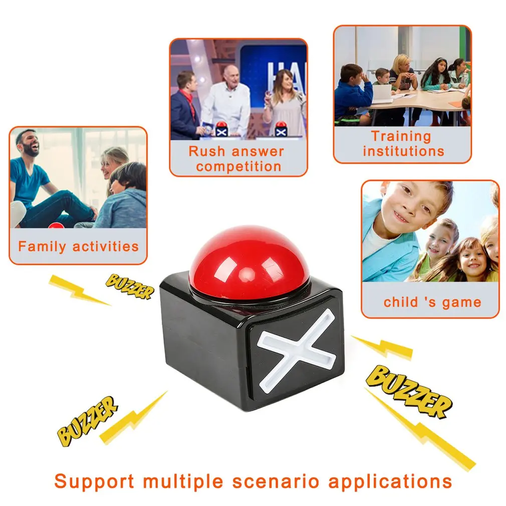 Игровой зуммер находится в круговой дуговой угловой конструкции, чтобы избежать вреда для рук, и когда вы нажимаете на него красная кнопка будет светильник, Базз будет звонить, увеличивая удовольствие от игры.