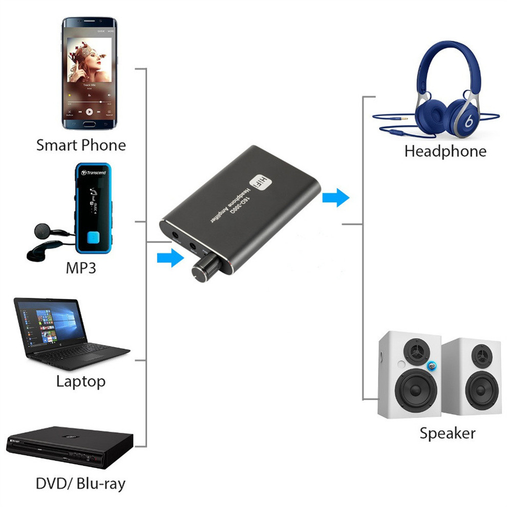 [Портативный и легкий]-этот усилитель для наушников предназначен для того, чтобы вы могли наслаждаться музыкой в любое время и в любом месте; Гладкая, прочная оболочка и шасси могут обеспечить длительное использование