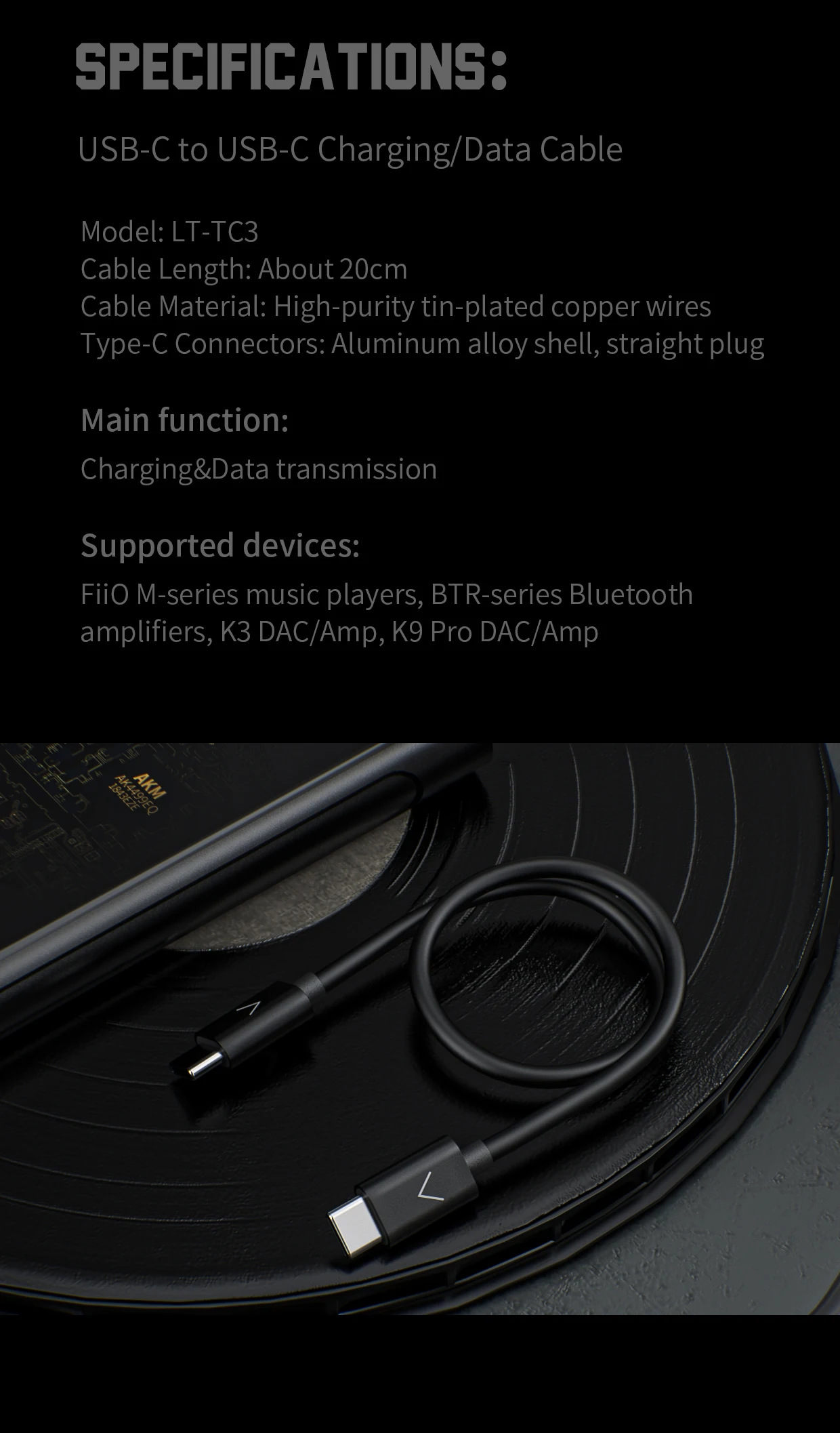 FiiO LT-TC3 20 см Type-C зарядный кабель для передачи данных Type-C для телефона Android подключение с M15 музыкальные плееры/BTR3/BTR5 AMP/Q3/K3 DAC