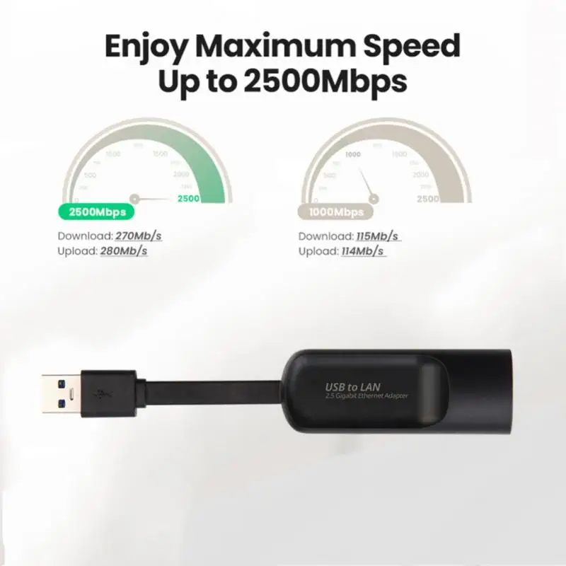 1. USB к Gigabit Ethernet-адаптер поддерживает высокоскоростной широкополосный доступ до 2,5 Гбит/с (2500 Мбит/с), 2.5x быстрее, чем 1 Гбит/с Gigabit Ethernet и обратная совместимость с 10/100/1000 Мбит/с.