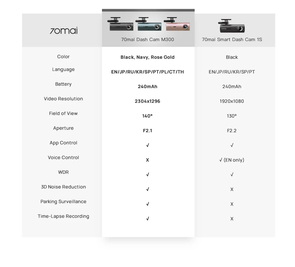 Оснащенный 3-мегапиксельной камерой, Dash Cam M300 записывает 2304x1296P, что в 1,5 раза четче, чем стандартный 1080P.