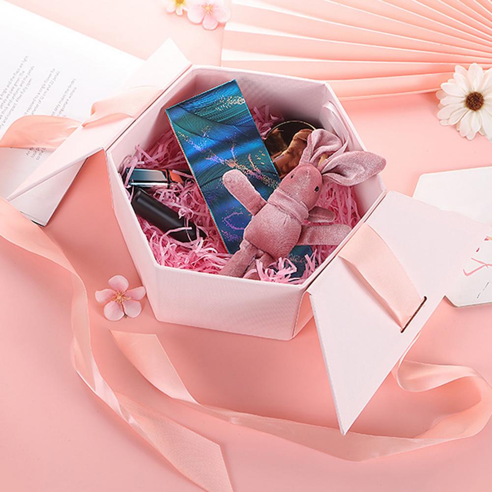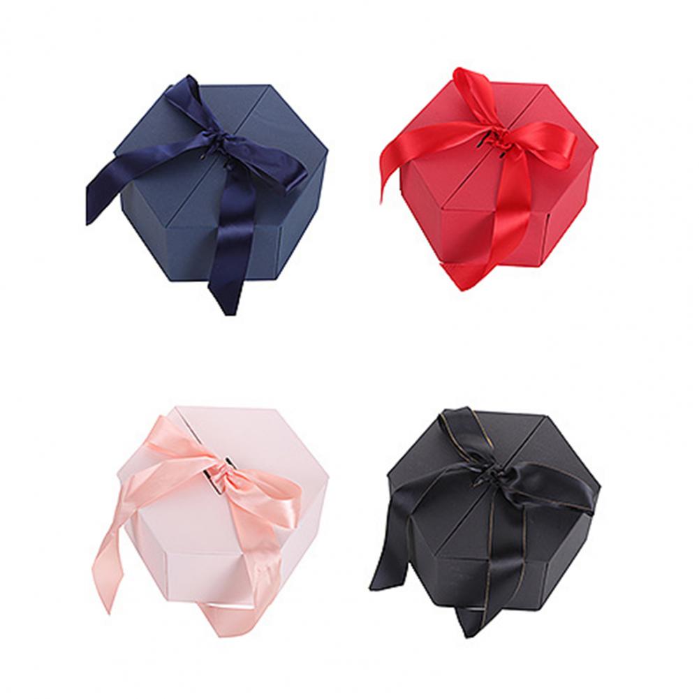 Изысканная, многоразовая, портативная и универсальная подарочная коробка в форме Шестиугольника с лентой имеет романтический и теплый внешний вид.