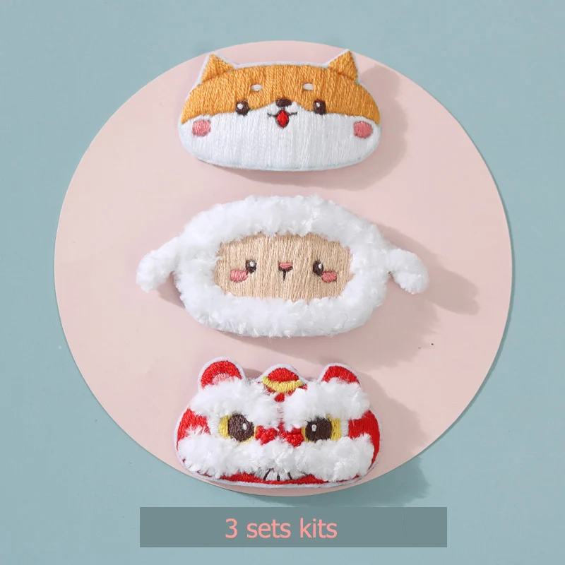 Без отделки, забавная заколка для волос для девочек с милым животным медведем, собакой, котом, Кроликом, Свинкой, комплект с вышивкой для детей, ручная работа, заколка для волос, подарок