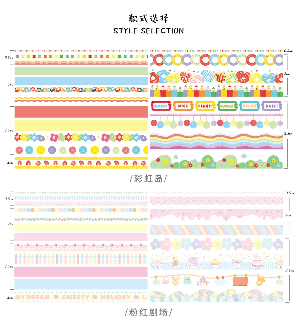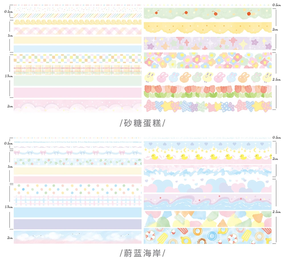 Размер ленты:(0,5 см * 4 + 1 см * 4 + 1,5 м * 4 + 2 см * 4 + 2,5 см * 4)* 2 м