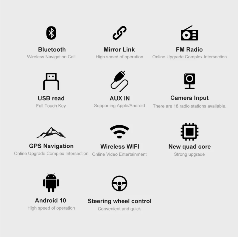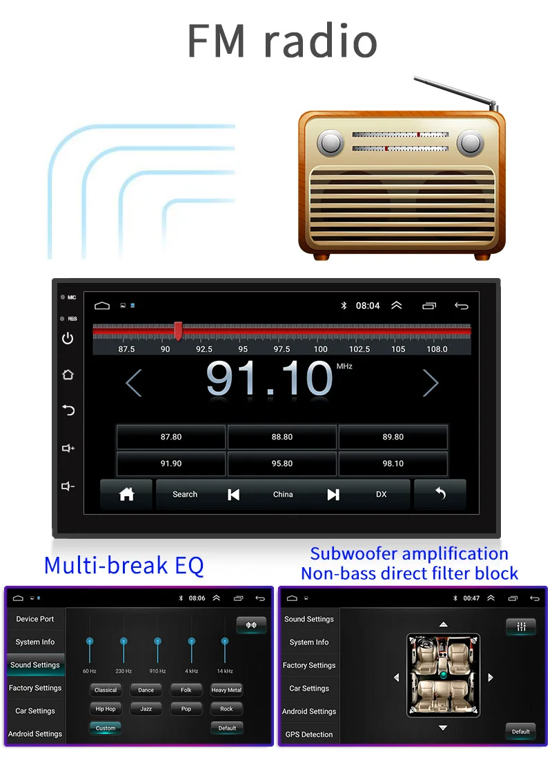 14.FM/AM радио: онлайн-музыка вы можете передавать музыку на автомобильный стерео FM, чтобы наслаждаться оригинальным стереозвуком автомобиля