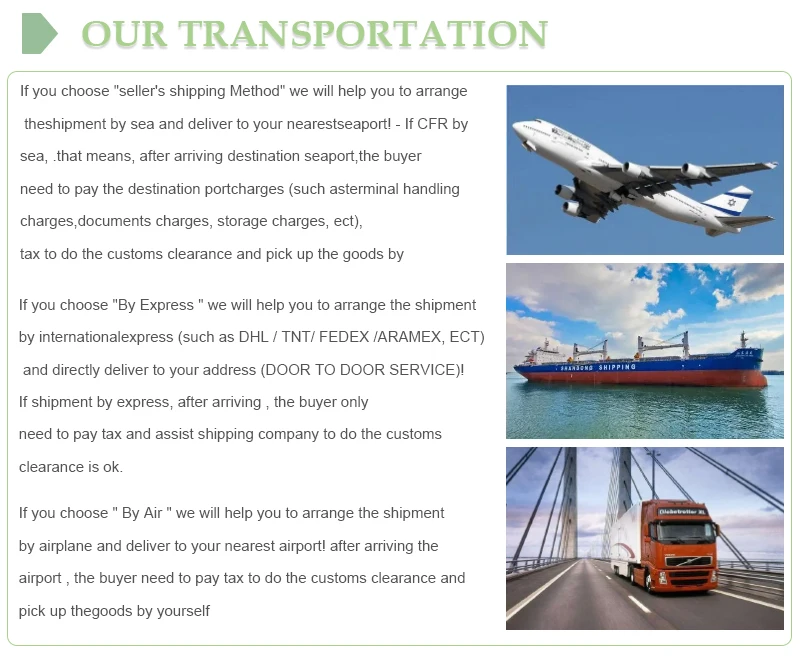 1. Если вы выберете «способ доставки продавца», мы поможем вам организовать доставку по морю и доставить в ближайший морской порт!-Если CFR морем, это означает, что после прибытия морского порта назначения, покупателю необходимо оплатить стоимость порта назначения (например, расходы на обработку терминала, расходы на документы, расходы на хранение и т. Д.), Налог на таможенную очистку и забрать товары самостоятельно.-Если CFR по морю, требуется около 10 ~ 60 дней, чтобы приехать, в разных странах с разным временем доставки. Если вы хотите узнать точное время, пожалуйста, свяжитесь с нашим продавцом. Irislee-если вы выбираете по морю, но ваша страна находится внутри страны, она должна быть отправлена во время транспортировки, иногда она должна сделать таможенное оформление в морском порту