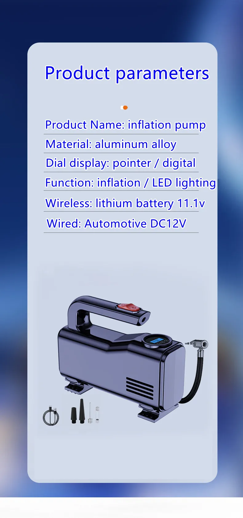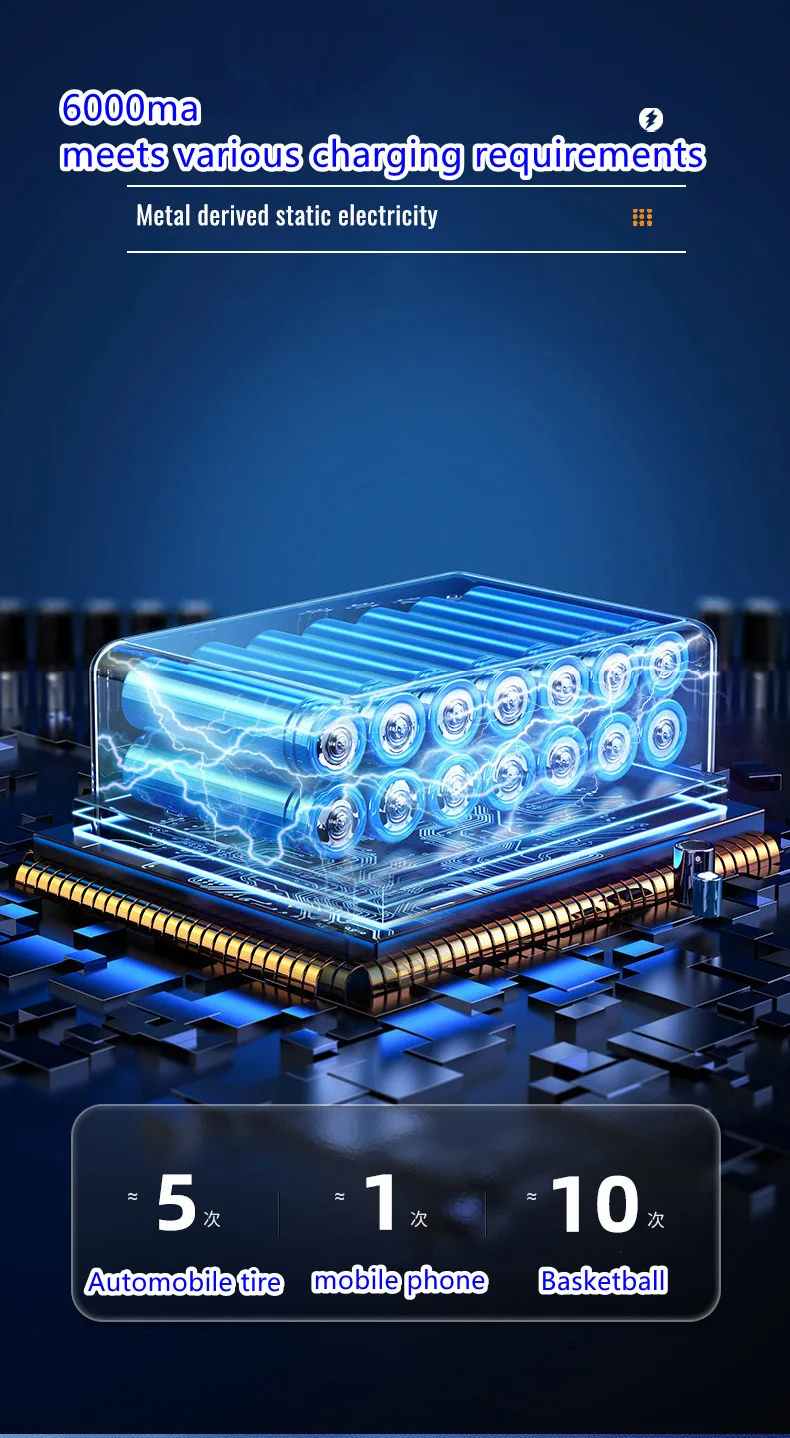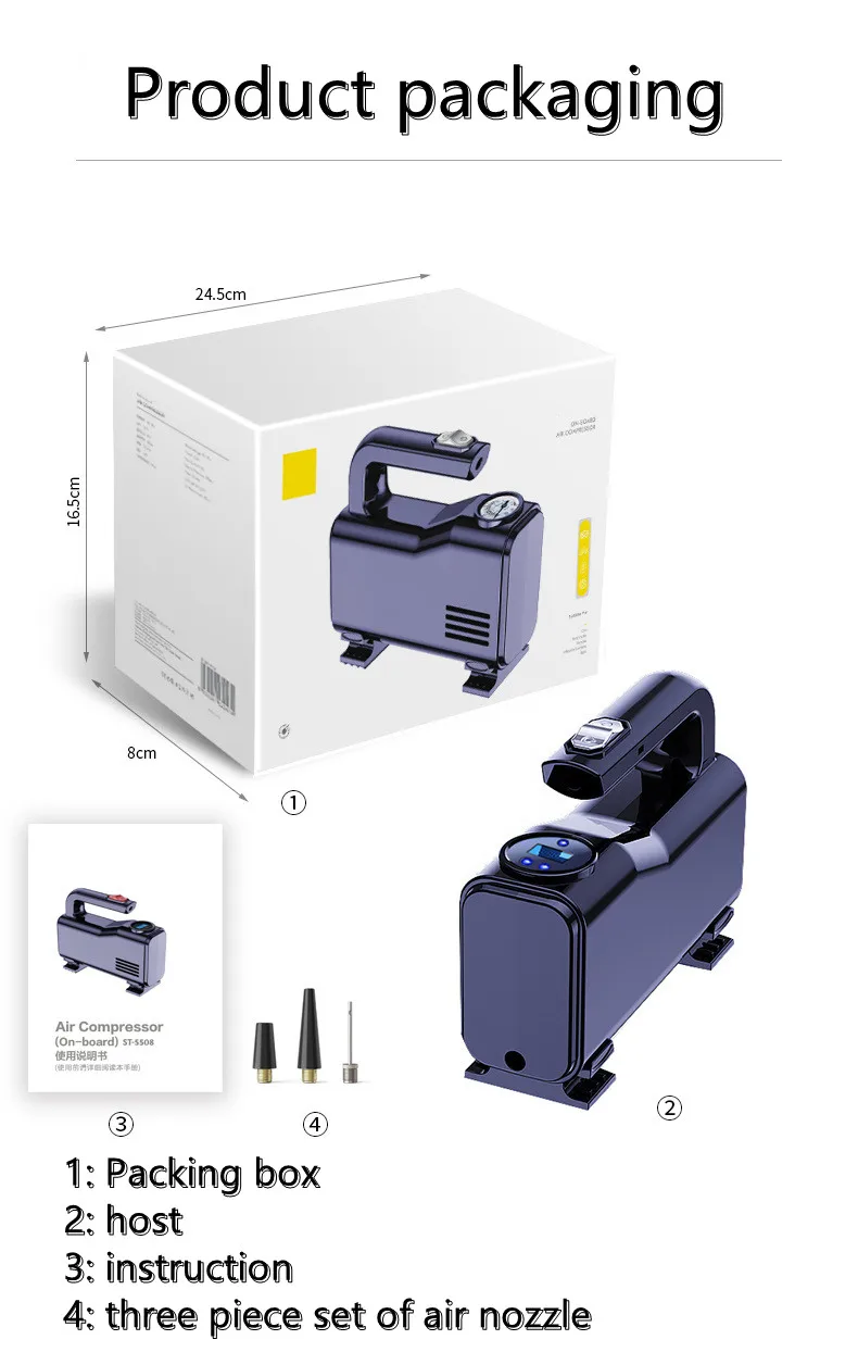 5. Он оснащен полным набором насадок, которые могут использоваться для надувания шин, резиновых лодок, воздушных подушек, надувных игрушек, шариков и других целей.