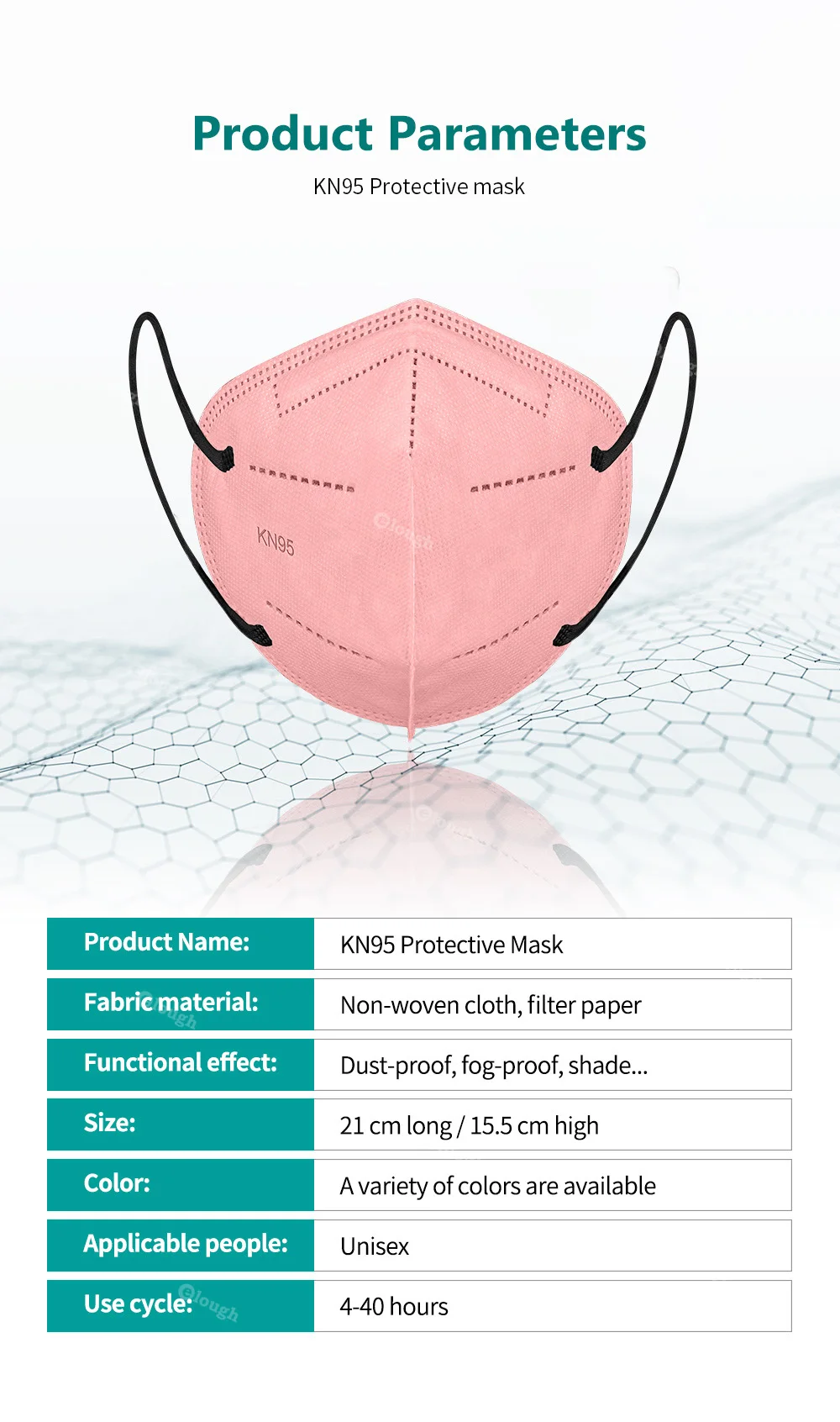 Color:KN95 dark pink/gray/watermelon red/dark green/light green/khaki/yellow