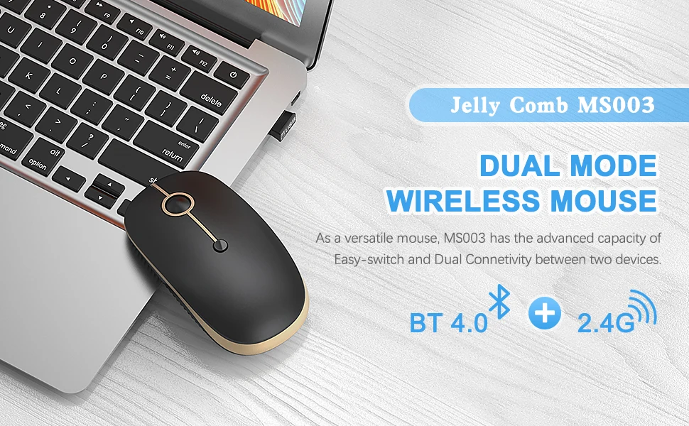 Желе расческа двойной режим Bluetooth/2,4 GHz беспроводная мышь может подключиться к двум устройствам одновременно через Bluetooth и 2,4 ГГц USB приемник. Вы можете переключить режим между двумя устройствами просто одним щелчком. С помощью только одной мыши вы можете свободно переключаться на два устройства, от рабочего стола до планшета, ноутбука до Macbook, чрезвычайно удобное управление.