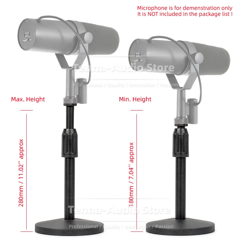 Регулируемая подставка для микрофона позволяет легко создавать профессиональные звуковые вокалы, не входя в голосовую кабину в студии звукозаписи. Стальная металлическая конструкция увеличивает прочность, пока она регулируется. Идеально подходит для вещания, передачи голоса, сцены и т. Д.