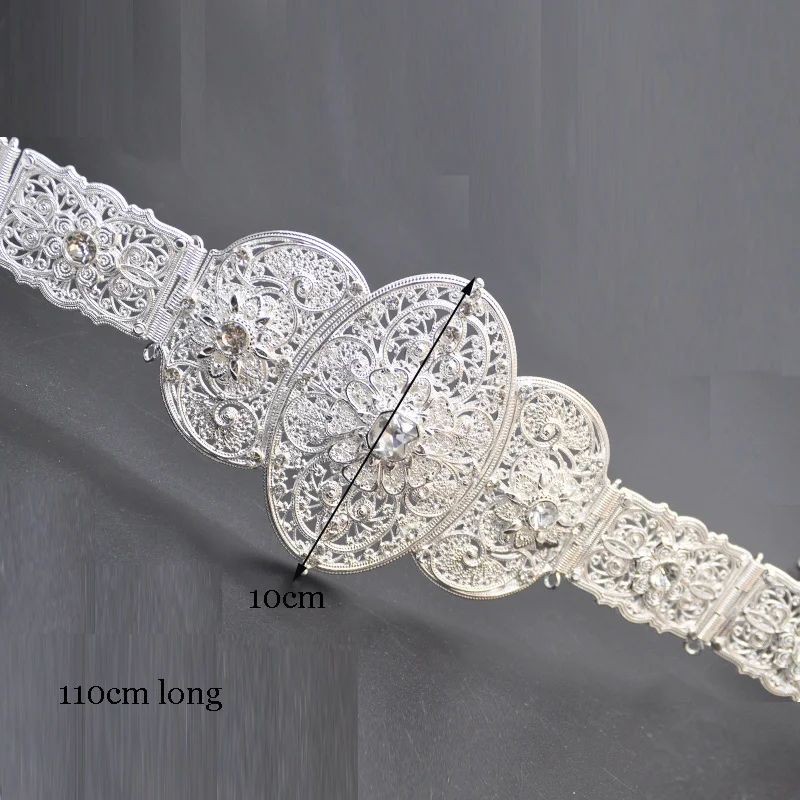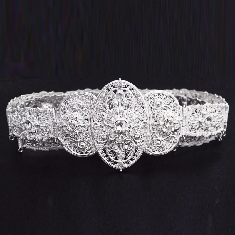Turkish royal wedding jewelry retro women's carved glittering metal bridal dress crystal belt chain