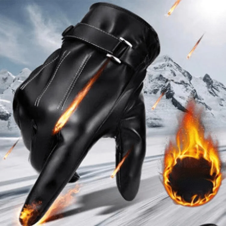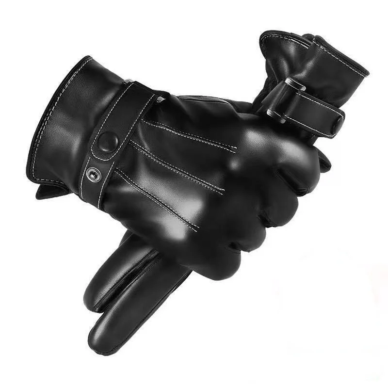Зимние перчатки из искусственной кожи с тремя Tendons мужские зимние Студенческие теплые бархатные толстые мотоциклетные зимние перчатки с сенсорным экраном для вождения