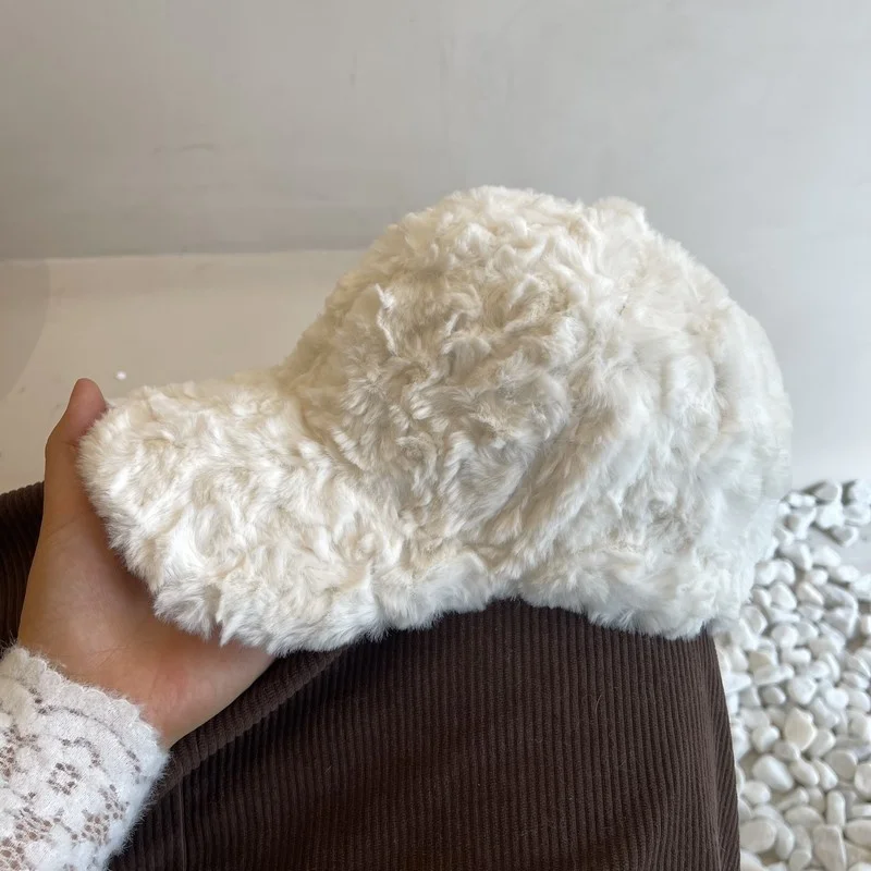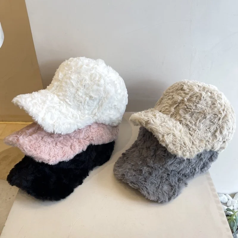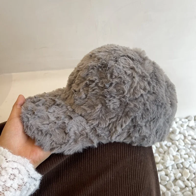 Зимняя теплая бейсбольная Кепка из смешанного кроличьего меха, Женская Осенняя универсальная плюшевая шапка, подходящая для лица, большая бейсбольная кепка s