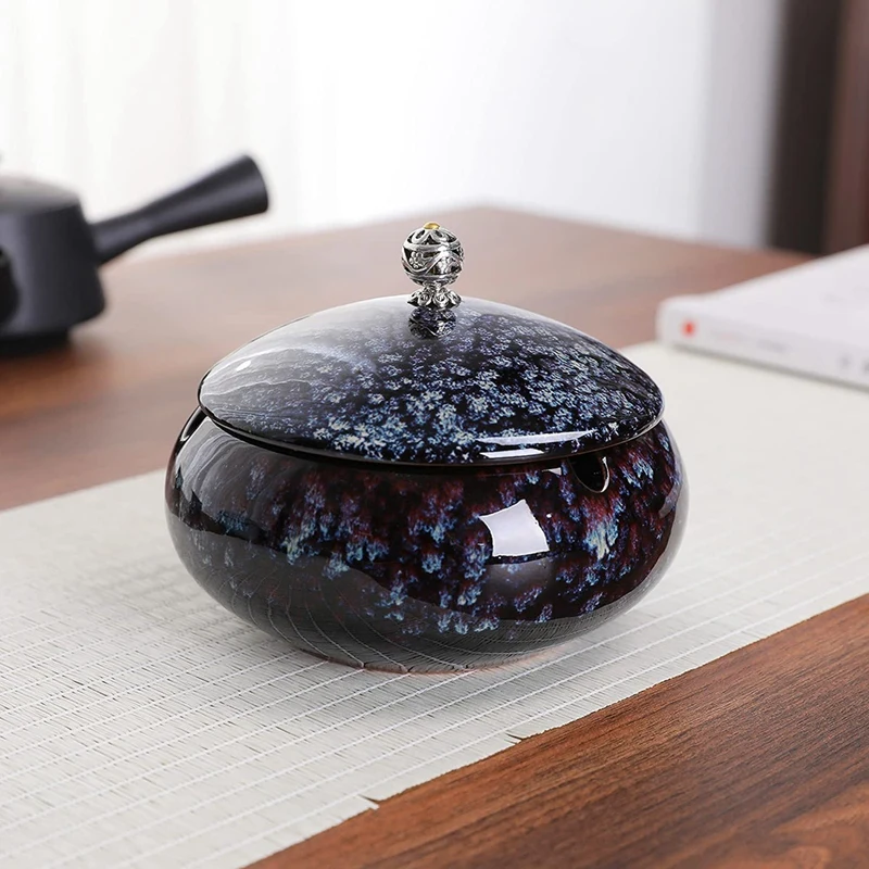 The capacity is large enough, perfectly retains ash and cigarette butts and reduces odor, keep the table clean, and make your mood pleasant.