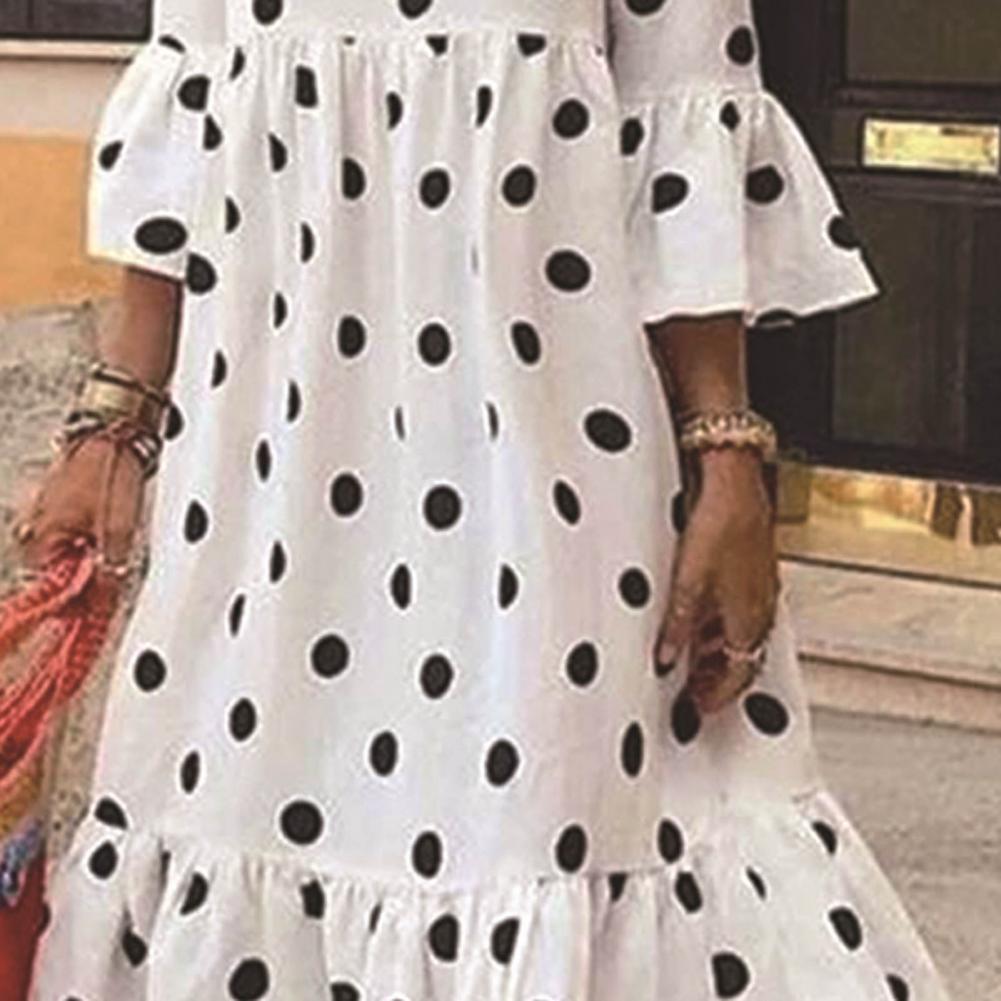 Шикарный дизайн в горошек делает это платье более милым и очаровательным. Платье с оборками и большим подолом можно сочетать с высоким каблуком, чтобы подчеркнуть женственный и стильный вид.
