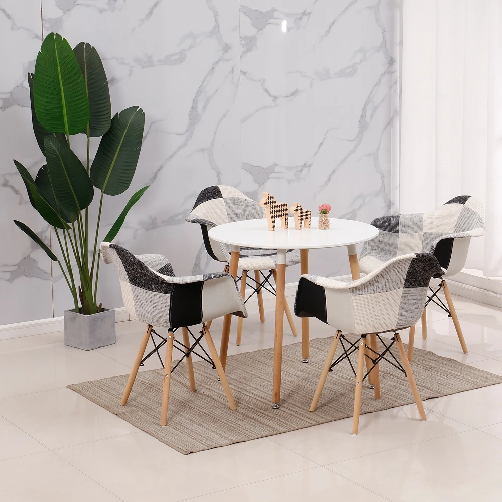 Обеденная кресла с обивкой Лоскутная, для кресла с деревянными ножками кресла для Гостиная Кухня мебель многоцветный стулья