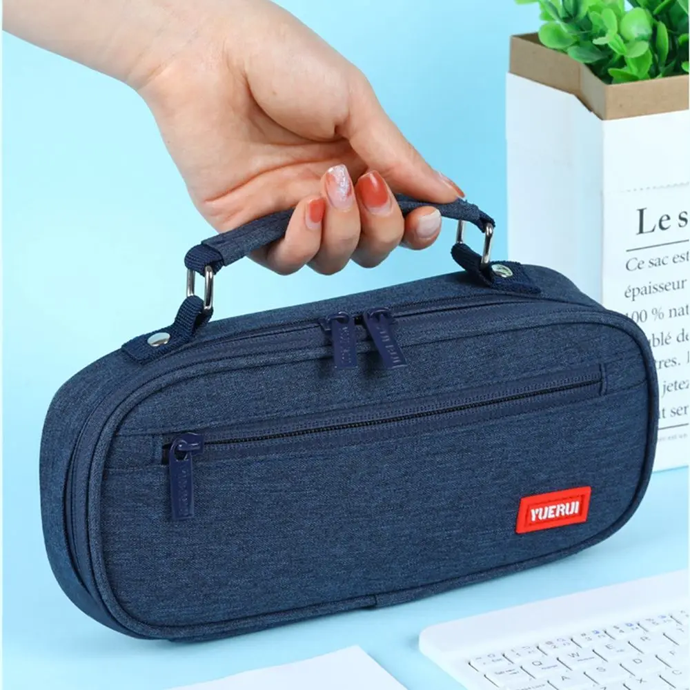 Наименование: сумка для хранения канцелярских принадлежностей Размеры: 9,6*4,5 * 2in (24,5*11,5*5 см) Цвет: черный; Розовый; Синий; Темно-синий Материал: холст Посылка включает в себя: 1 * пенал Не только мешочек для ручек, но также может использоваться как Дорожный Чехол, косметичка, мешочек для инструментов, сумка для лекарств или сумка для рукоделия и т. д. Это потрясающий вариант для тех, кто нуждается в организации ручек, карандашей, кистей для макияжа. Подходит для всех ваших повседневных нужд. Боковая ручка позволяет легко носить с собой, подходит как для офиса, школы, дома, так и для путешествий.