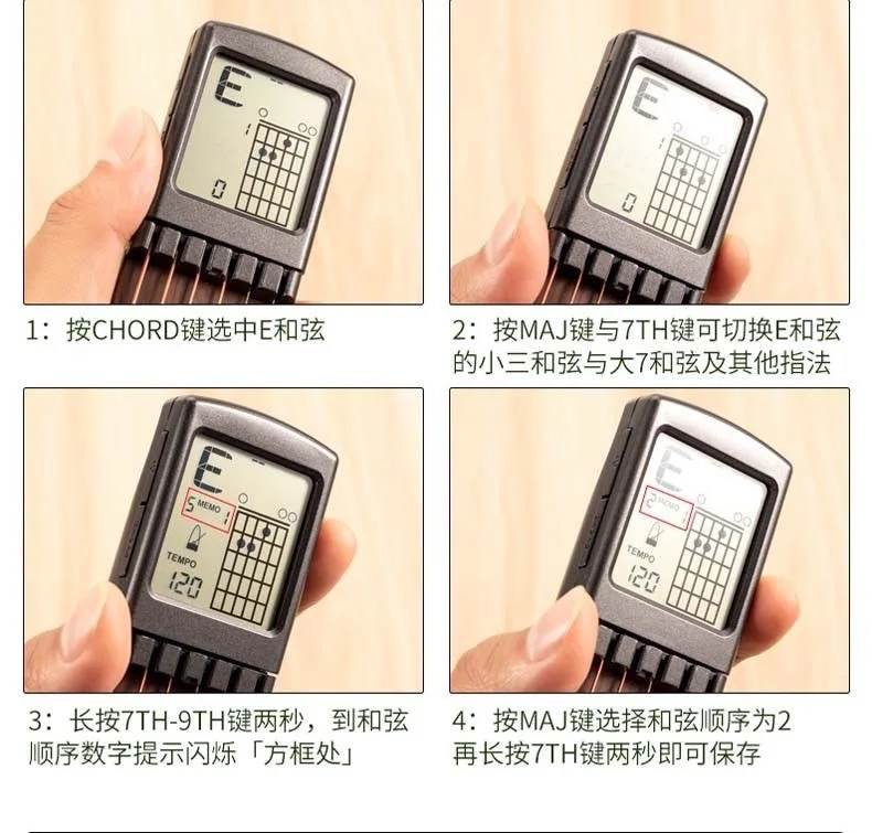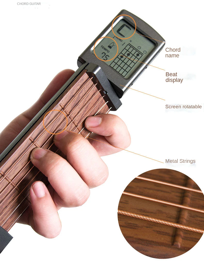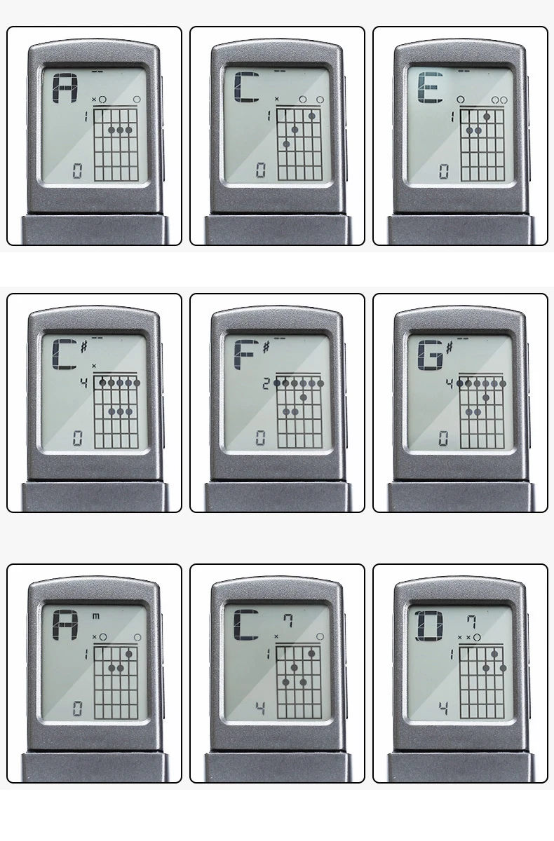 Тренажер для гитарных аккордов: ЖК-экран, отображающий наиболее часто используемые диаграммы аккордов, может помочь новичкам гитар тренироваться и запоминать аккорды. Вращающийся дизайн позволяет вам иметь лучший угол обзора.