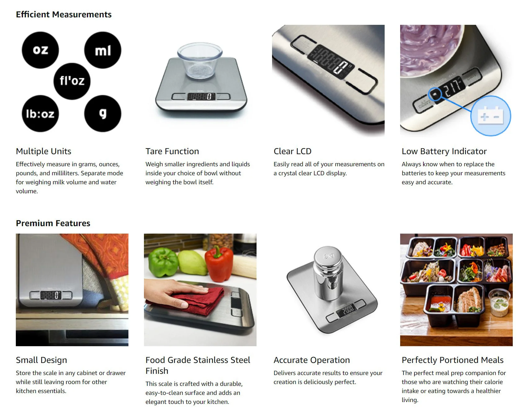 Цифровые многофункциональные кухонные весы, 11lb/22lb принимает массу весом до 5 кг/10 кг платформа из нержавеющей стали с ЖК-дисплей Дисплей (серебро)