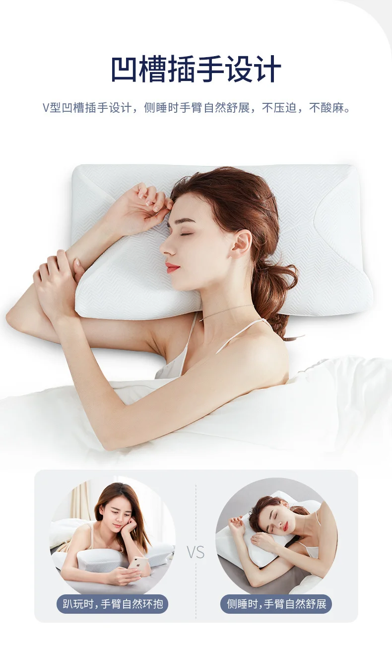 V-shaped groove plug design, the arms stretch naturally when sleeping on the side, without compression and numbness.
