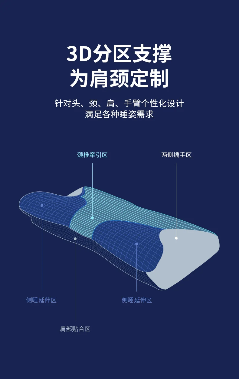 Personalized design for head, neck, shoulder and arm to meet the needs of various sleeping positions