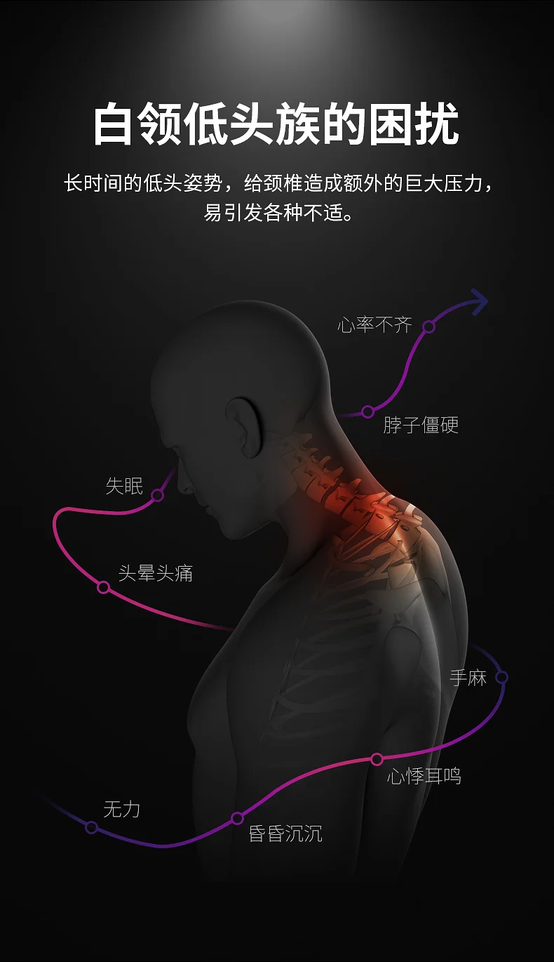 Long-term bowing posture puts extra pressure on the cervical spine, which easily leads to various kinds of discomfort.