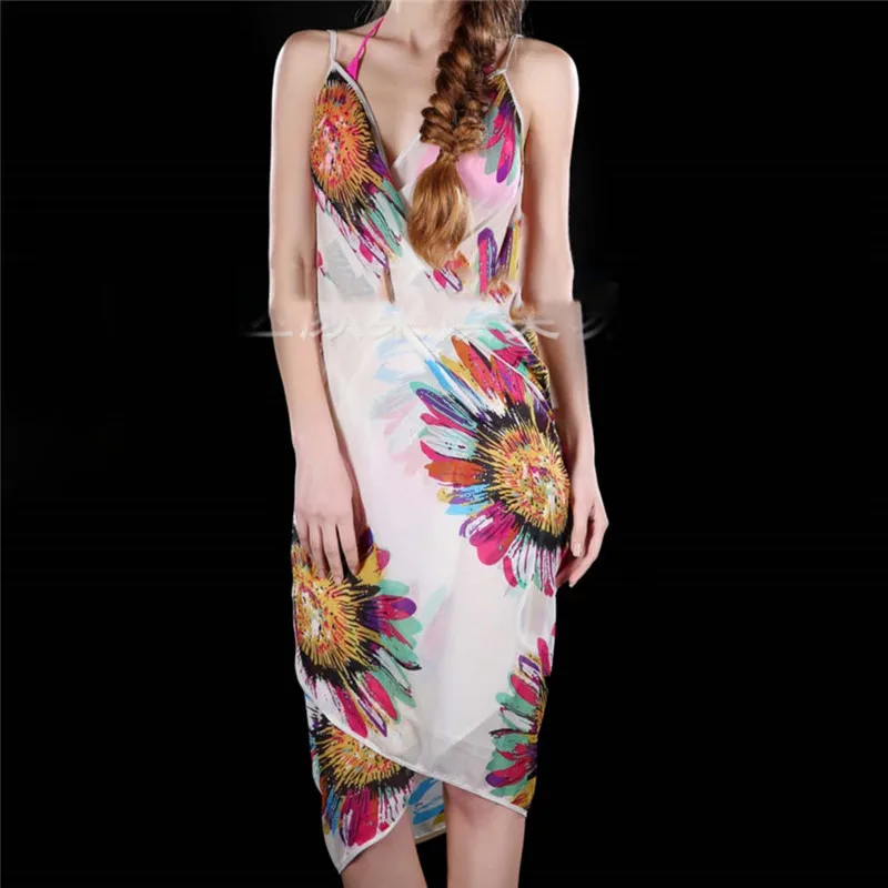 Богемное женское летнее пляжное платье, бикини, накидка, одежда для плавания, накидка, хлопковая туника, сексуальное платье с глубоким v-образным вырезом, Caftan, лето
