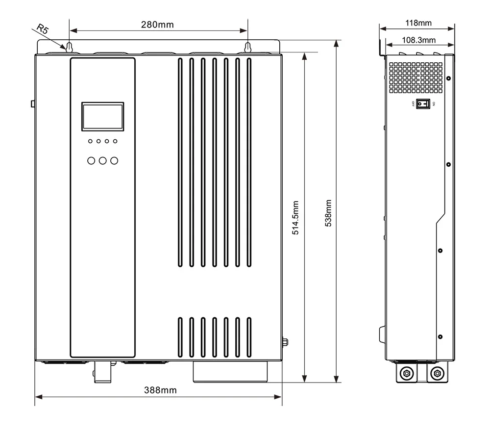 Генерирует энергию от PV непосредственно для подачи нагрузки, даже без батареиЭффективность PV до AC намного вышеСпецификация: