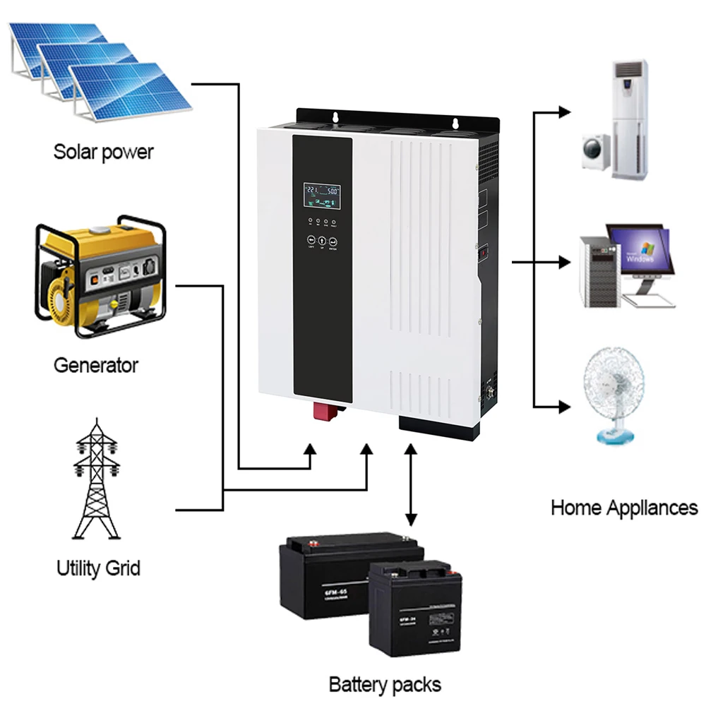 8000 Вт 48VDC до 230VAC MPPT солнечный гибридный Инвертор Чистая синусоида 150A контроллер солнечного заряда с WIFI может работать без батареи