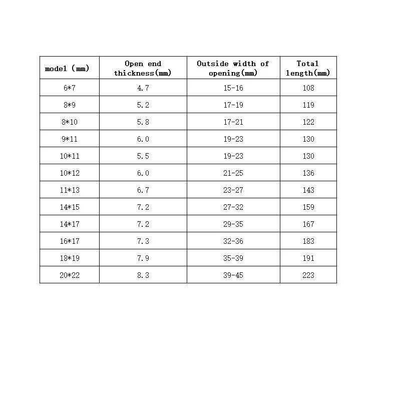 * Дополнительный размер: 6*7 мм/8*9 мм/10*11 мм/12*13 мм/14*15 мм/16*17 мм/18*19 мм/20*22 мм