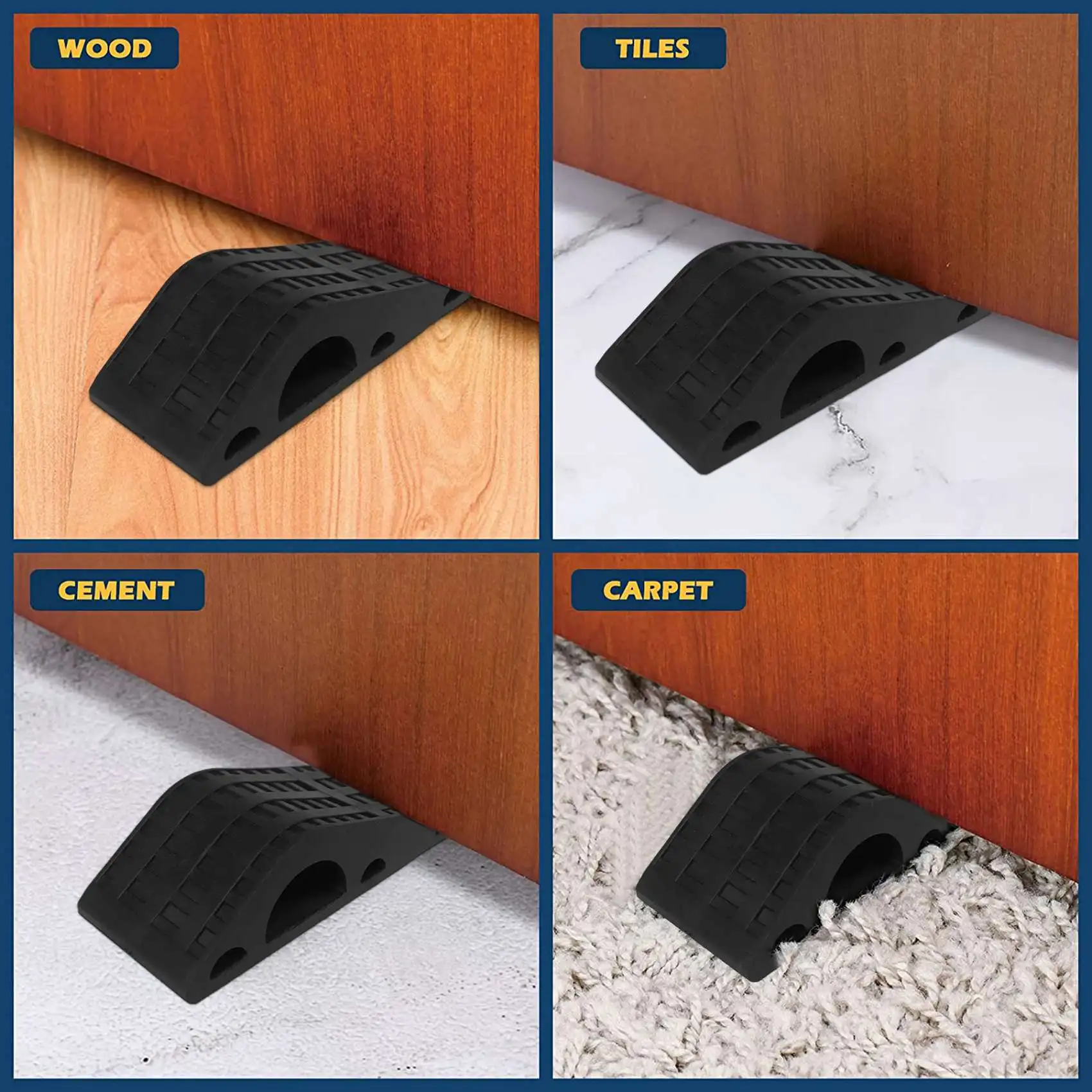 Сверхпрочная Нескользящая Резина: Наши дверные стопоры изготовлены из высококачественной резины, что делает их прочными и гибкими, вы можете использовать их безопасно.
