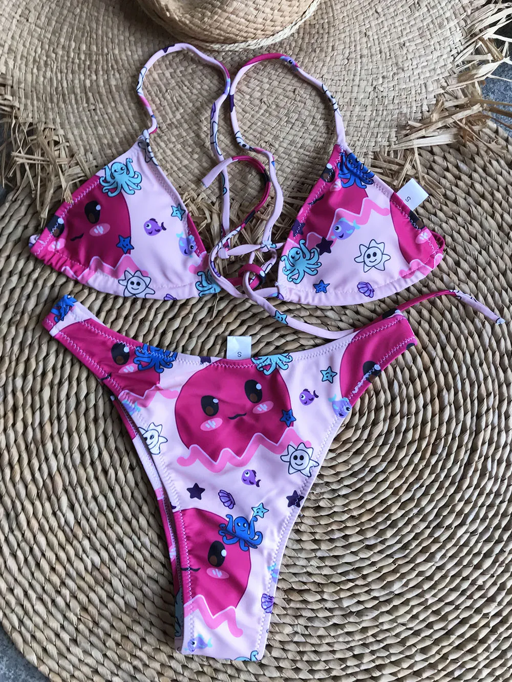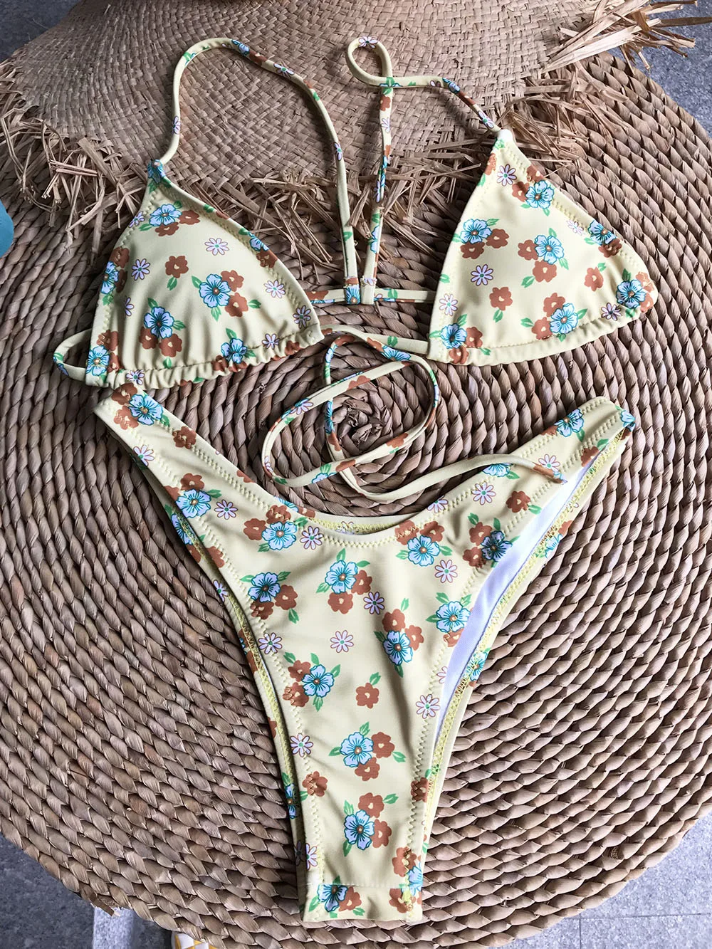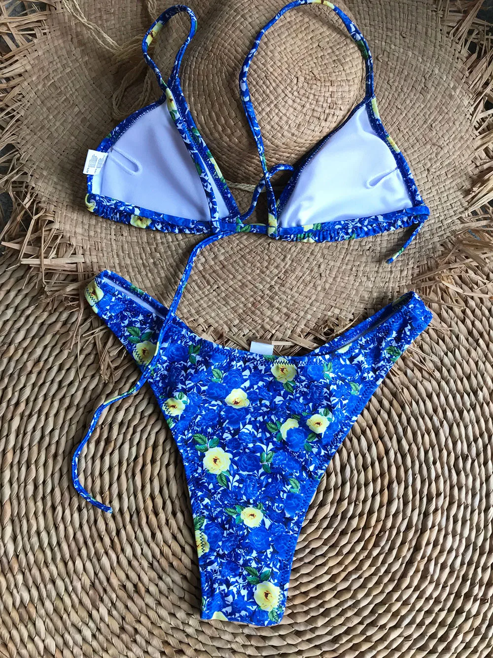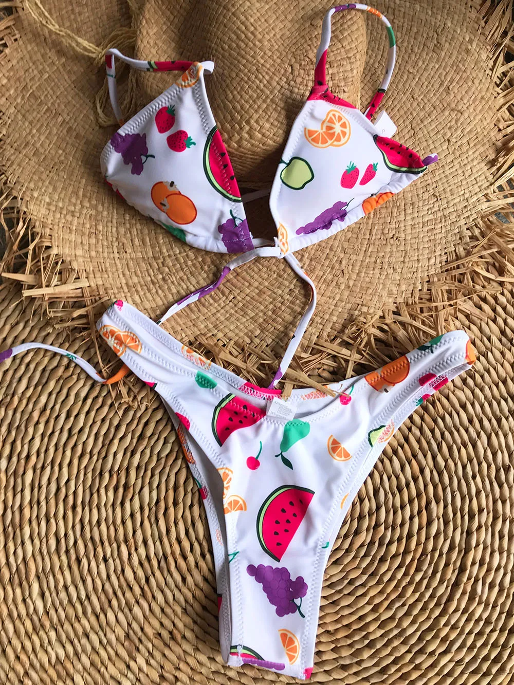 Летняя пляжная одежда, купальники, наряды, новый стиль, Микро Мини треугольник, высокий вырез, стринги, шикарный принт, бразильский мягкий комплект бикини пуш-ап