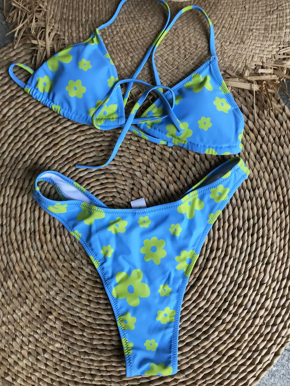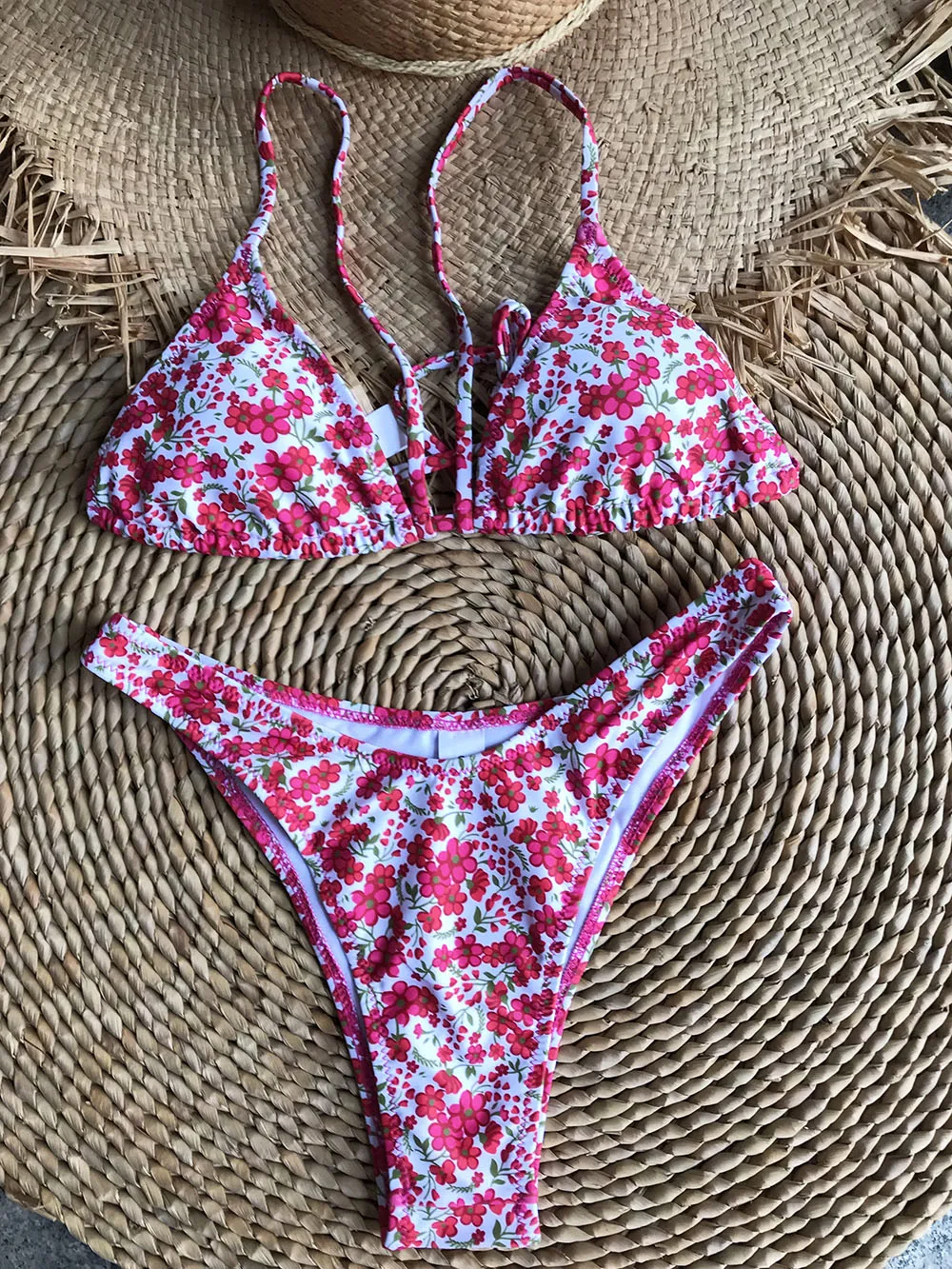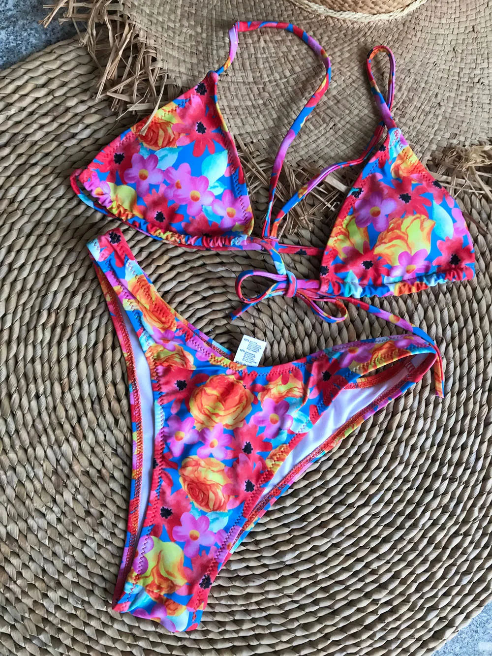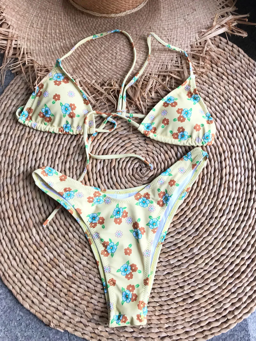 Летняя пляжная одежда, купальники, наряды, новый стиль, Микро Мини треугольник, высокий вырез, стринги, шикарный принт, бразильский мягкий комплект бикини пуш-ап