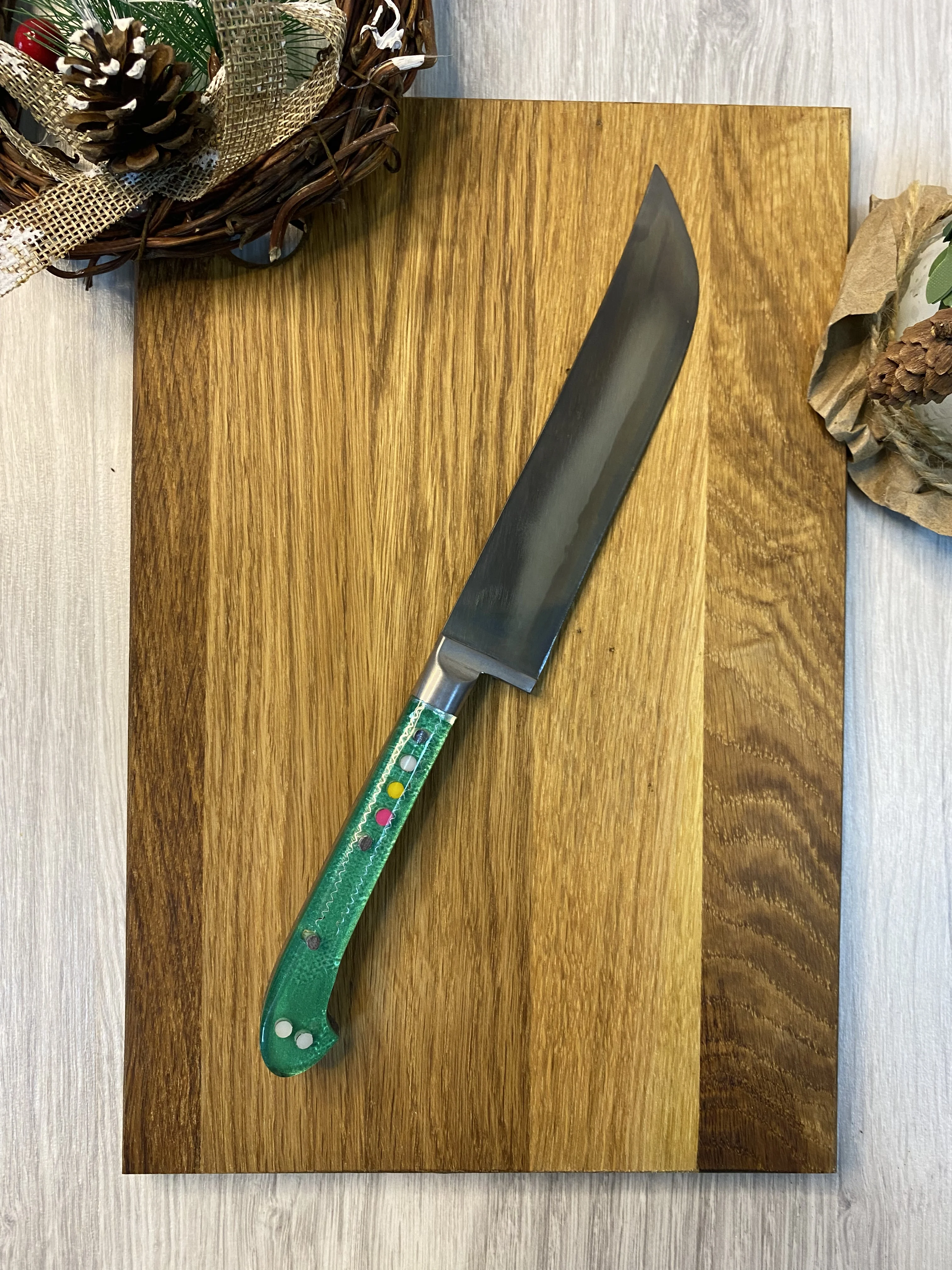 идеально подходит для нарезки мяса и овощей. Сталь марки ШХ-15 хорошо держит