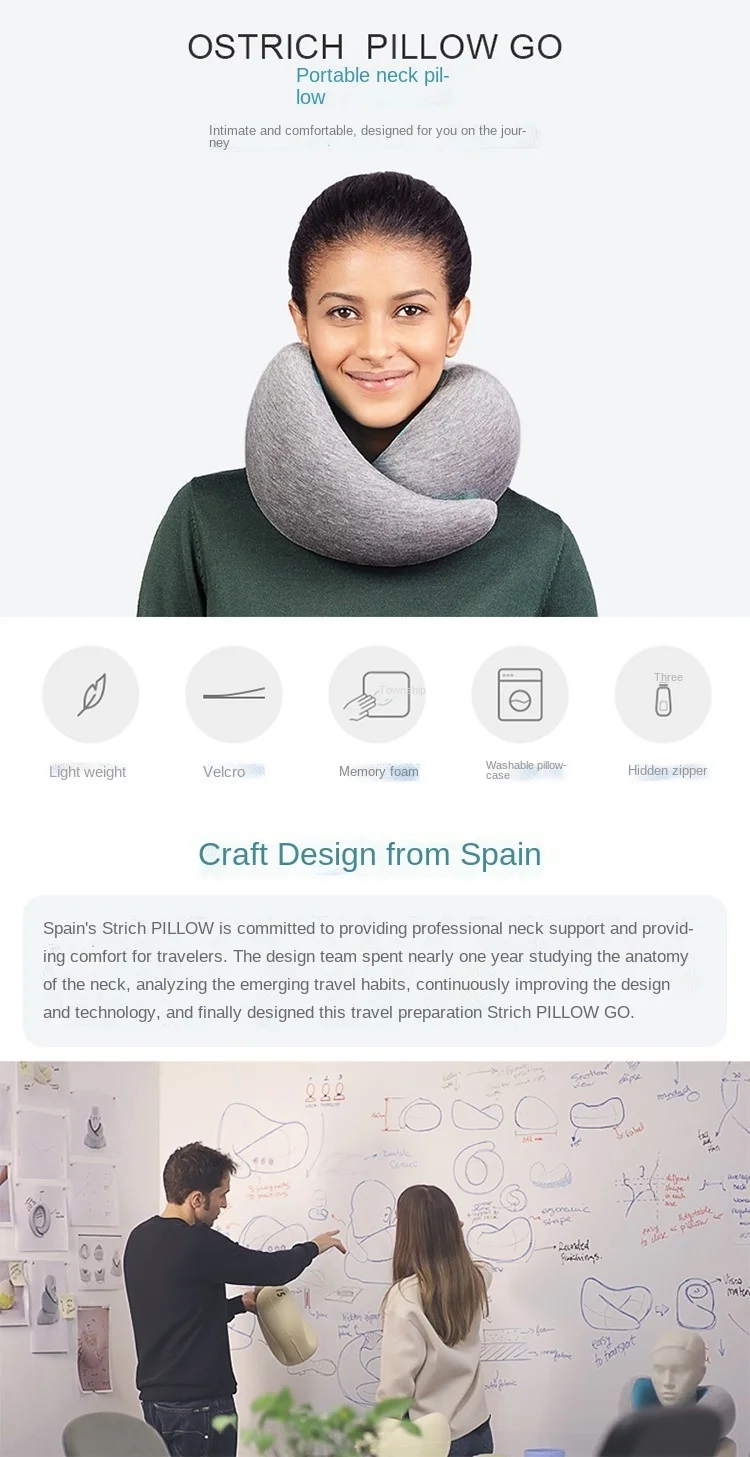 Подушка страуса GO-это модная и комфортная подушка для путешествий. Горловина поддерживается концепцией технологического дизайна, которая обеспечивает комфортное и всестороннее ощущение поддержки. Тщательно подобранные материалы могут уменьшить объем и подходят для путешествий.