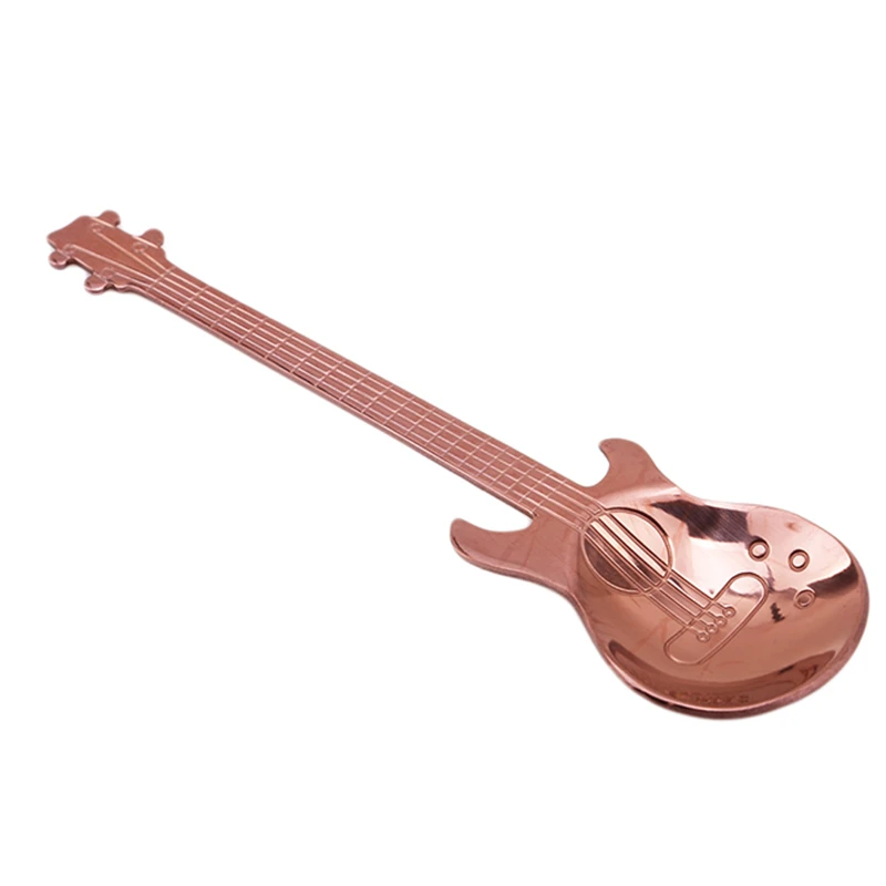 Нержавеющая сталь чайные ложки, кофейные аксессуары чайная ложка гитара кофейная ложка кофе совок розово-золотистый и черный столовые приборыОписание:
