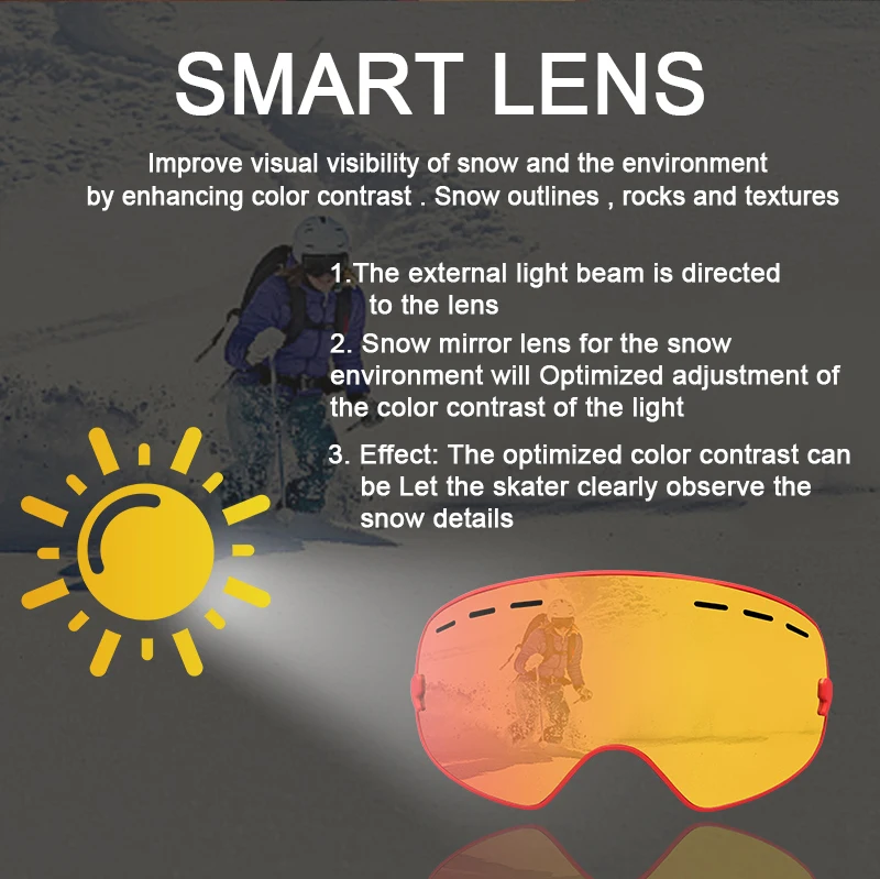 Лыжные очки с отличной вентиляционной системой и защитным покрытием UV400 дают вам прекрасный опыт во время катания на лыжах. Красивый и модный внешний вид приносит вам полное визуальное удовольствие в различных видах спорта на открытом воздухе.