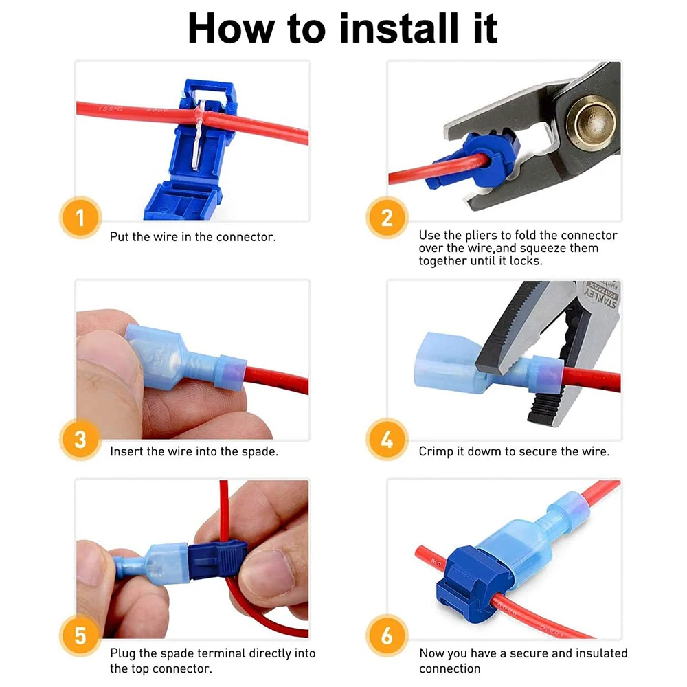 Диапазон проводов: 22-18 AWG (красный) / 18-14 AWG (синий) / 12 AWG (желтый)
