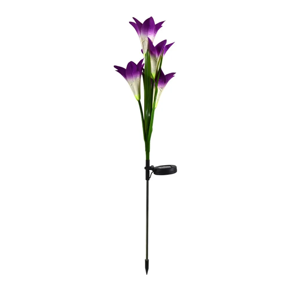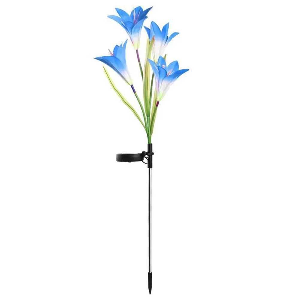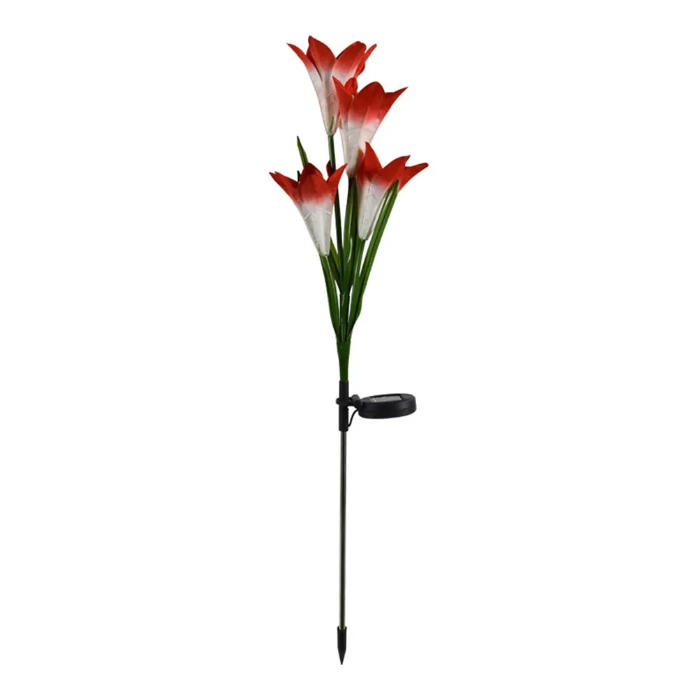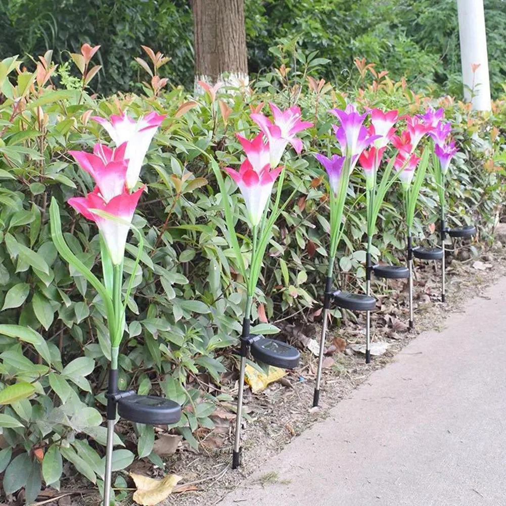[Светильник, изменяющий 7 цветов и простой в установке] никаких проводов и внешнего электричества не требуется, красивая и изящная Лилия в форме Солнечный Кол светильник s с 7 цветов меняется автоматически светильник в темное время суток для освещения на вашем заднем дворе и путь. Идеально подходит как светильник траектории и наземный светильник, подходит для посадки возле деревьев, клумбы, забора и дорожек и т. Д.