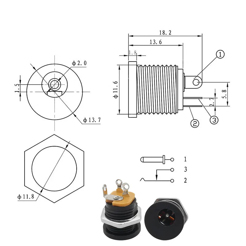 2 шт. DC-022B DC-022 DC-0995.5 x 2,1 мм DC разъем питания гнездо панель крепление припоя Разъем адаптер с кабелем 5,5*2,1
