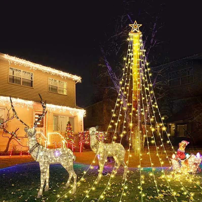 Waterproof waterfall Christmas star lights are very suitable for indoor and outdoor decoration. The sturdy structure makes it sturdy and durable, and it is not easy to break and overheat after long-term use. They are strong enough to provide years of high-quality lighting.