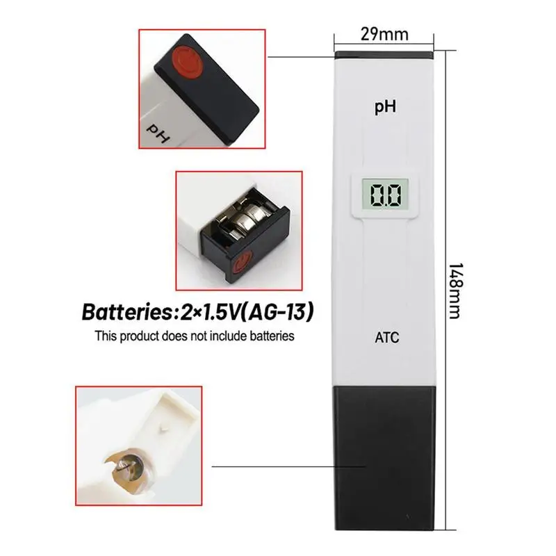Элементы питания: прибор для измерения уровня PH-2X 1,5 V LR44 (не прилагаются) измерительный прибор TDS-1 CR2032 батарея таблеточного типа (не прилагаются)