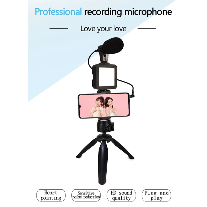 Полный видеокомплект для смартфона-с микрофоном, Ультра-яркий светильник и Регулируемый Настольный Штатив для записи видео, подкастов и многого другого.