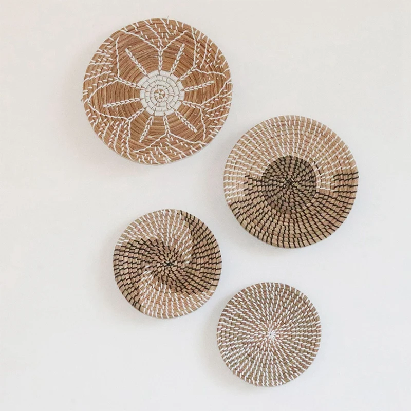 3. Многофункциональные-эти корзины можно не только повесить на стену, но и разместить на столе. Тканые неглубокие корзины и подносы выглядят очень красиво и могут использоваться как настольные украшения, центральные украшения, корзины для фруктов или хлеба или использоваться для размещения тарелок и штативов на стойке или столе. Он также отлично выглядит как поднос для журнального столика.