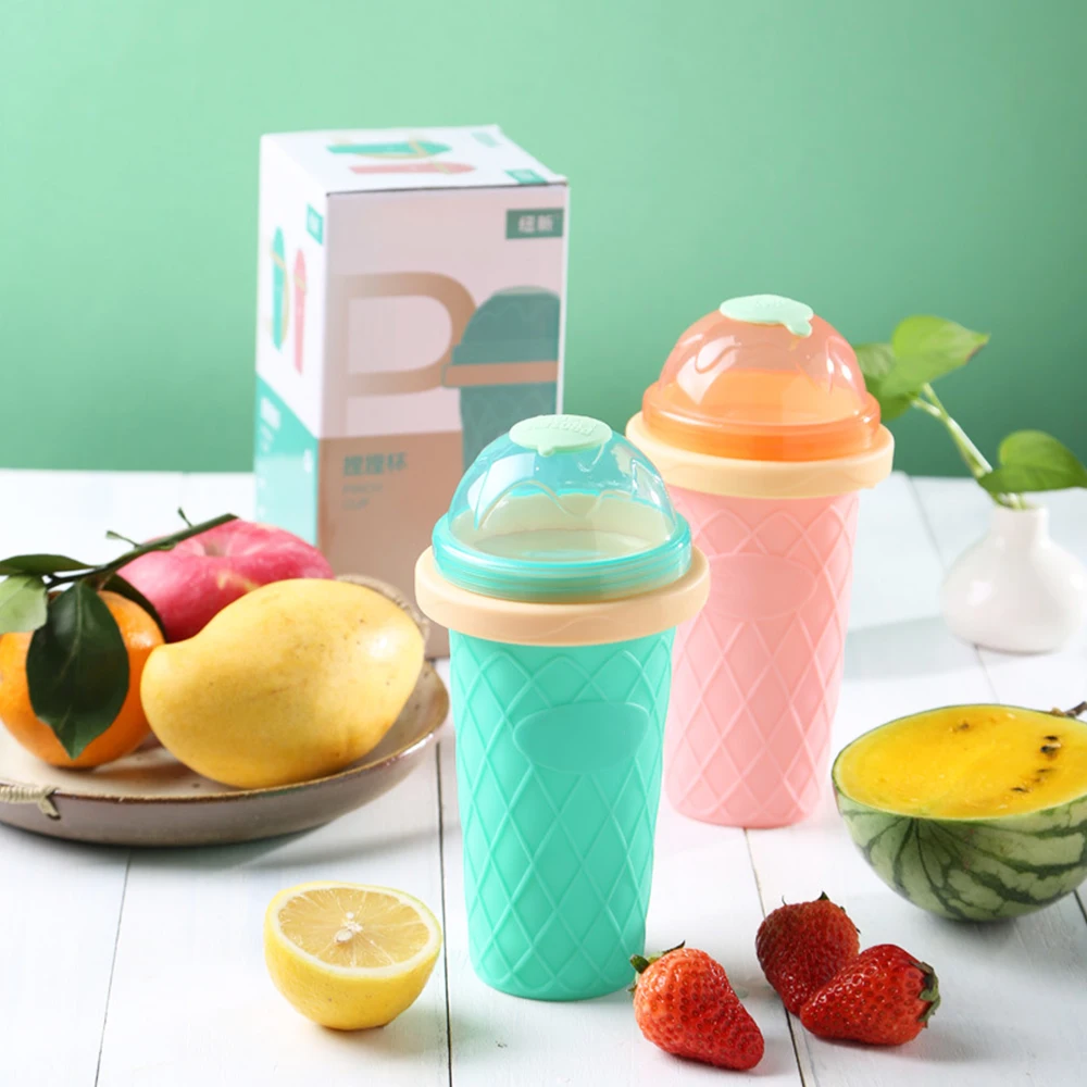 1. Вам нужно положить его в холодильник, дождитесь, пока чашка со льдом замерзнет (выньте чашку, чтобы она затверделась), выньте ее и налейте любимый сок или напиток, И прижмите его, чтобы сделать ваш любимый смузи.