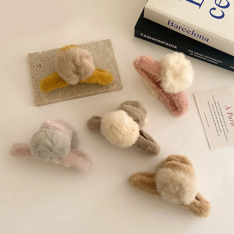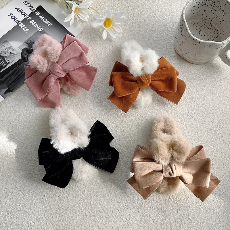Женская зимняя элегантная плюшевая повязка для волос из искусственного меха, украшение ободок для волос, заколки для волос, модные аксессуары для волос